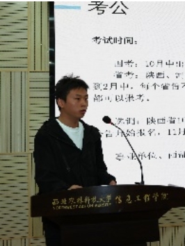 在考研经验分享中,秦世豪围绕自己考研的经验展开分享,向同学们推荐了部分优质网课,并深入讲述了自己在考研过程中的一些心得体会,给出了同学们合理的时间规划,并强调了劳逸结合的重要性;陈均铃结合自己考研的心路历程,为大家推荐了一些考研宝典、微信小程序等优质资源,并把考研复习的学科进行时间规划,供大家参考。选调生上岸学生郭泽洋,从逻辑训练和时政积累切入,强调了行测、申论的做题方法,并给出了时间规划安排和复习建议;考公上岸学生杨馨悦,结合自己的考试经历,介绍了一些学习方法,推荐了一些网课、网盘、笔记,鼓励大家多练、多考,根据自己的需求进行选岗的取舍,并且给出大家专项+真题两模块的复习备考建议。就业领域代表,吕东阳以浩鲸云计算实习经历为例,从简历投递、招聘时间、面试技巧等方面介绍了自己的求职经历。