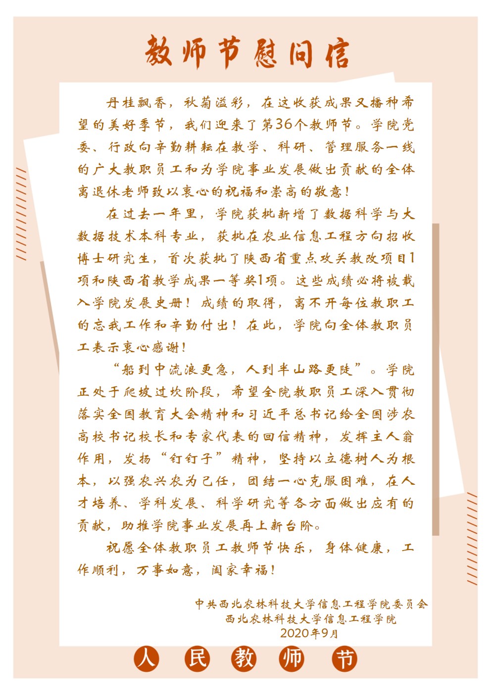 致全院教职工的一封信