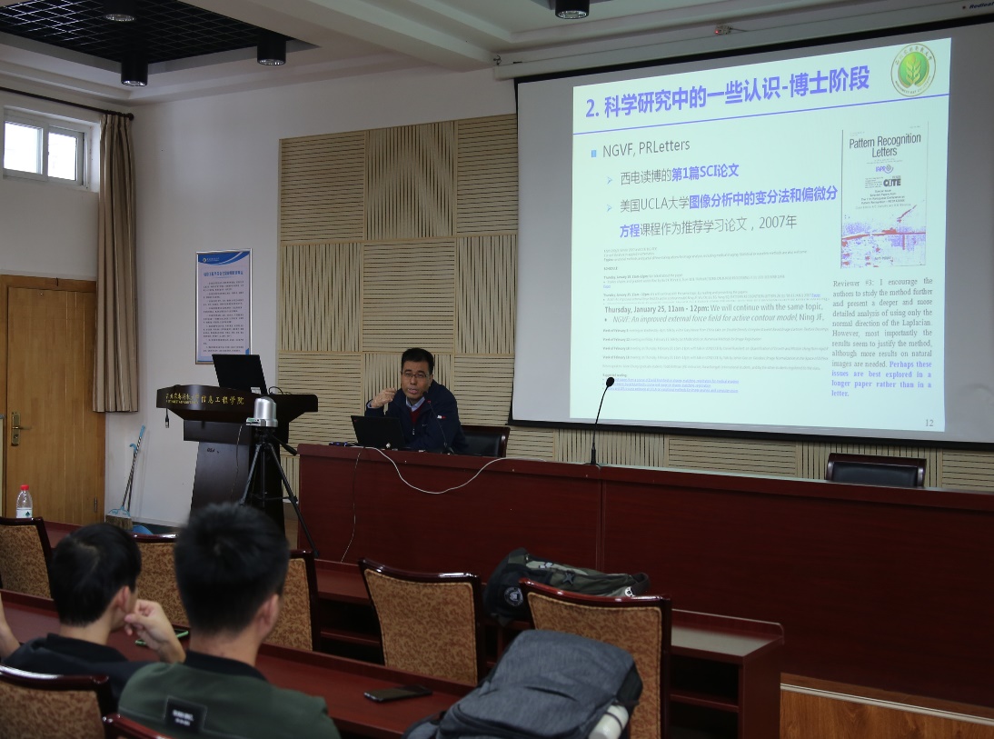 10月23日下午,beat365官网宁纪锋教授为学院全体硕士生作了"信息领域中科学研究与学术规范的一点认识和体会"为主题的报告。