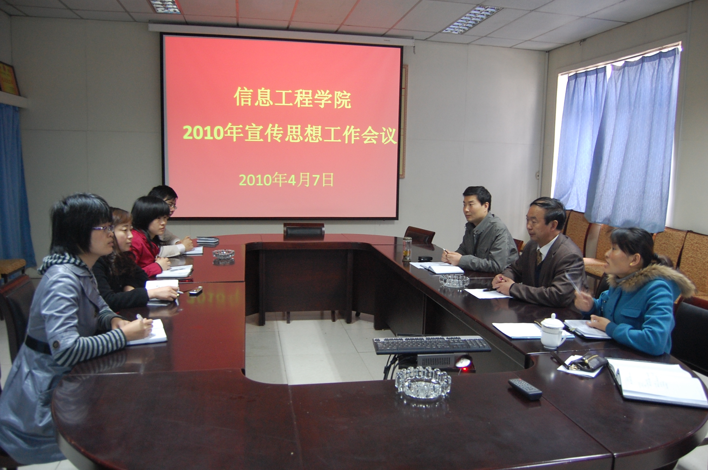 为了落实学校2010年宣传思想工作会议精神,beat365官网4月7日上午在学院一层会议室召开2010年宣传思想工作会议,传达学校3月24日宣传思想工作会议精神,安排部署2010年学院的宣传思想工作。院领导樊世明书记、何卫军副书记、综合办公室全体工作人员和教工通讯员参加了本次会议。樊世明书记就学院的宣传思想工作做了全面的部署和安排,何卫军副书记主持会议。