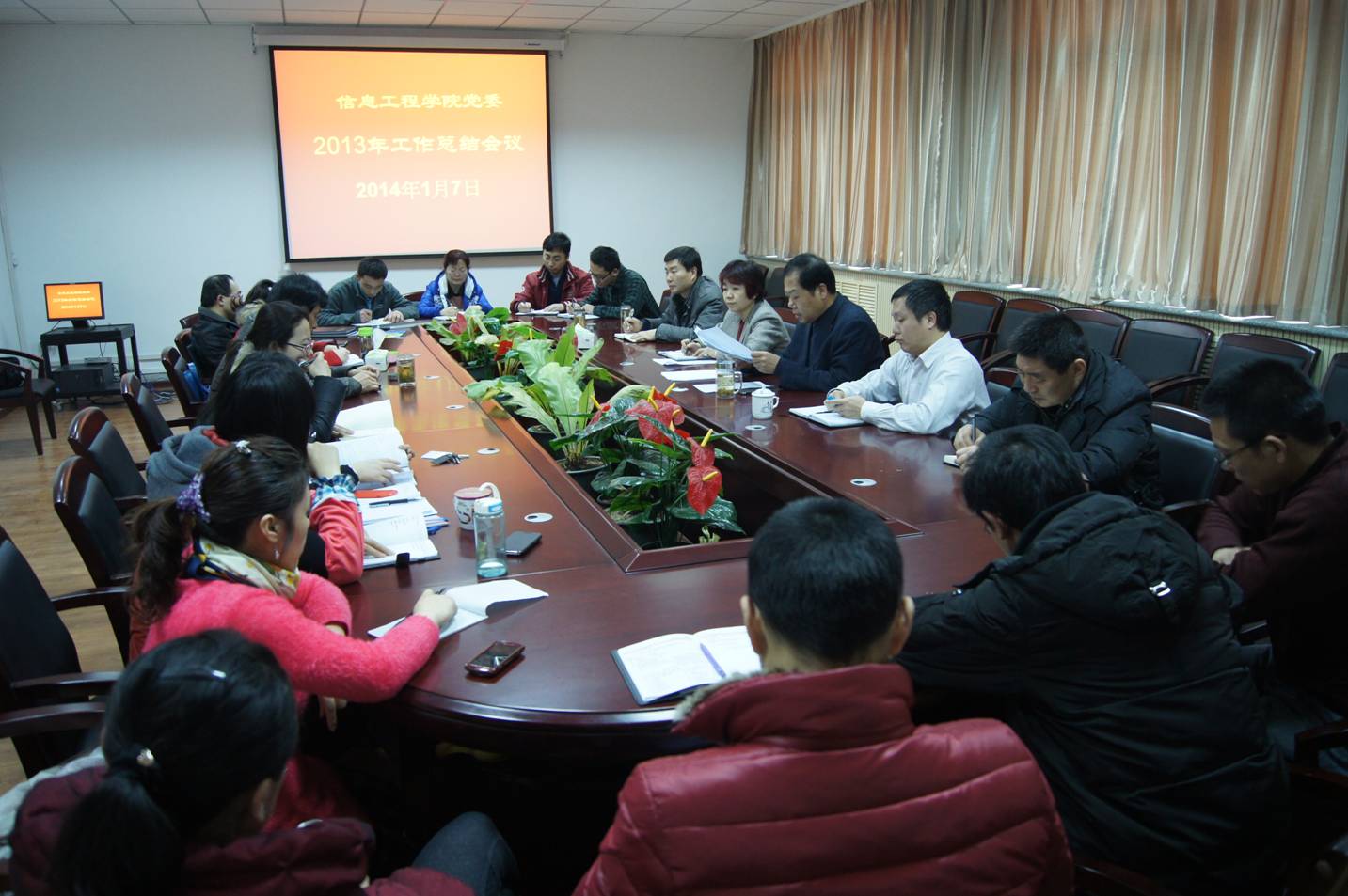 1月7日下午,学院在二层会议室召开了2013年党委工作总结会议。学院领导、党委委员和各党支部书记参加了会议。