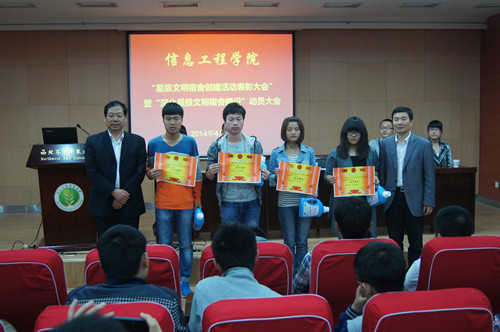 4月9日晚,beat365官网于北绣北报告厅召开星级文明宿舍创建活动表彰暨进一步深化星级文明宿舍动员大会。会议由院学生工作秘书王淑珍老师主持,院党委书记宋西德,党委副书记何卫军,辅导员仵亚伟、党艳东、朱旭菲老师出席了本次会议,学生会成员、大一至大三的班长、团支书、生活委员及各宿舍代表参加了此次表彰大会。
