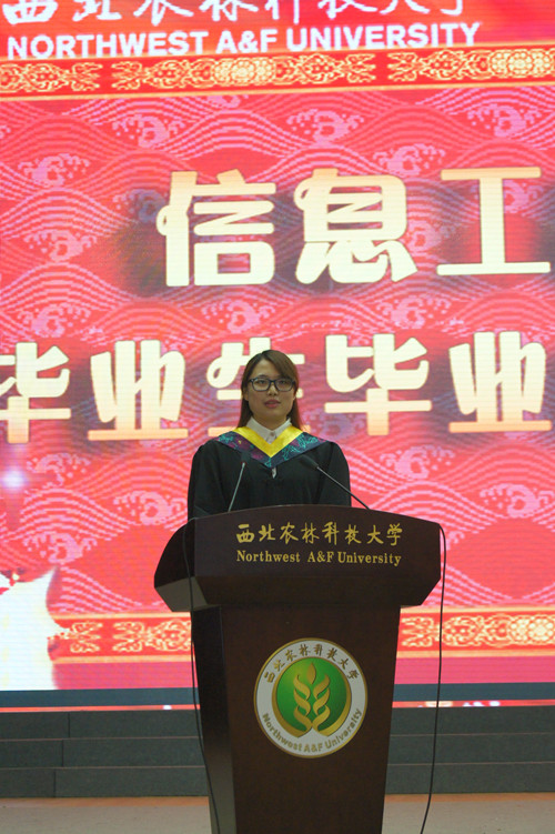 2014届毕业生代表郭荣发言,她代表全院毕业生表达了对学院深深的感激之情,眷恋之意。并表示2014届毕业生无论是走上工作岗位,还是继续深造,都将秉承着诚、朴、勇、毅的校训,以最饱满的热情去勇敢地面对各种挑战,不辜负各位老师、家长和母校对我们的辛勤栽培。胡少军代表学院教师为毕业生送上了祝福,希望毕业学子承载母校与老师的期盼,在工作中施展自己的才华,为母校争光。