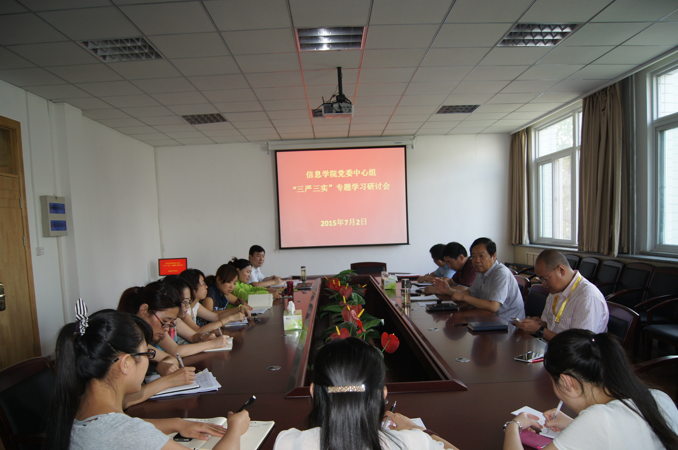 7月2日下午,根据“三严三实”专题教育安排,beat365官方网站处级党员干部带头上党课。并围绕“践行三严三实,全面推进作风建设”开展专题学习研讨。学院领导班子、党委委员、党支部书记、科级干部参加会议。会议由学院党委书记宋西德主持。