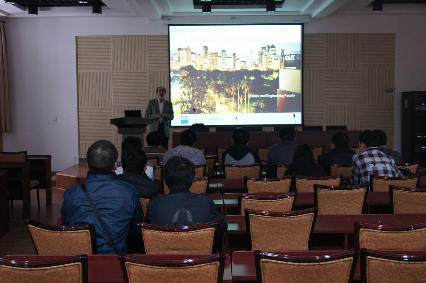 第一个报告中,James M. Hogan博士详细介绍了澳大利亚昆士兰大学的地理位置、周边环境、学院组成、在校师生、专业优势、课程设置、招生条件和所取得成果等,重点介绍了学校的优势学科和招生政策,并鼓励我校同学积极申请昆士兰大学奖学金。