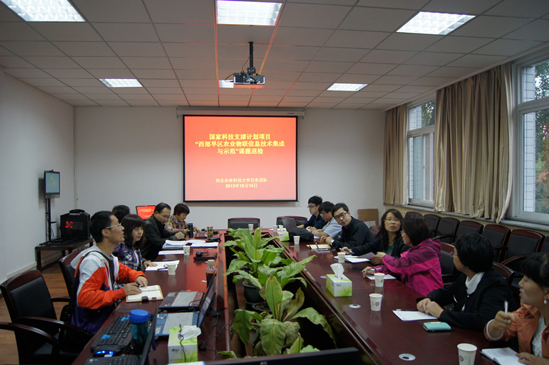 2013年10月14日,beat365官网李书琴教授课题组参加的“十二五”国家科技支撑计划“西部旱区农业物联信息服务平台”项目巡检汇报在beat365官网召开。参加项目巡检的主要单位有beat365官方网站、杨凌示范区科技信息中心、宝鸡市生产力促进中心、安塞县科技培训中心、西部电子商务股份有限公司等,巡检由杨凌精华农业投资有限公司组织。