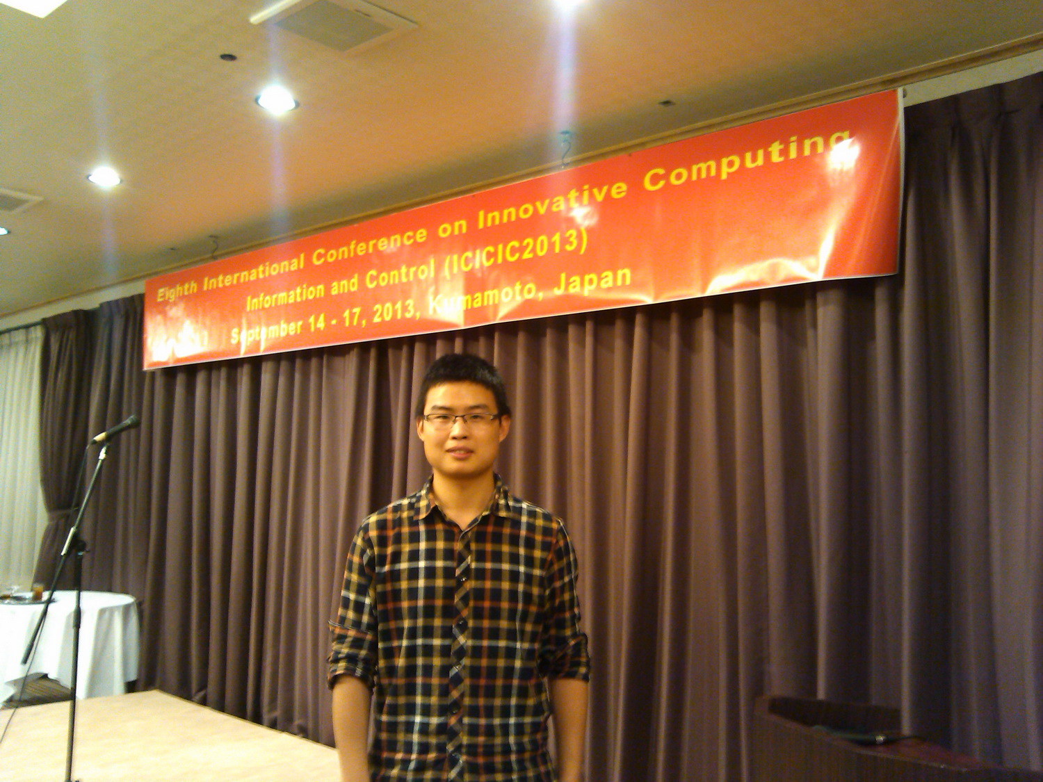 第8届创新计算、信息与控制国际学术会议(The Eighth International Conference on Innovative Computing, Information and Control, ICICIC2013)于2013年9月14日- 9月17日在日本熊本国际交流中心召开,会议由国际创新计算信息与控制学会(http://www.ijicic.org)和熊本东海大学主办。beat365官网蔡骋副教授指导的2011级计算机应用技术专业的硕士研究生李永超的论文“Nondestructive Fuji Apple Internal Quality Classification with Dielectric Feature Selection”(基于介电特征选择的富士苹果内部品质无损分类)被该会议收录,并在大会主会场做了专题报告。