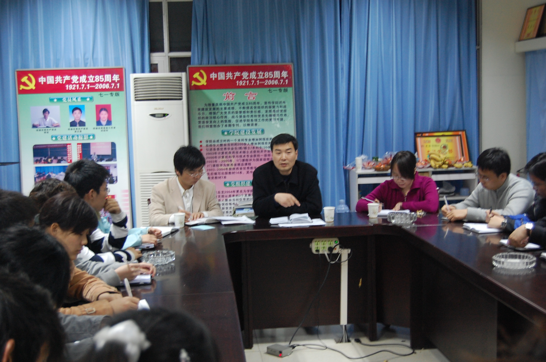 首先何副书记总结了2007年学院学生工作,对学生干部为学院所作的积极贡献表示感谢,对同学们认真负责、甘于奉献的工作态度进行了赞扬。何副书记强调学生干部是学生的领头雁,是学院和学生沟通的桥梁,是学院学生工作的中坚力量,他语重心长的对学生干部提出了几点要求:一是要求学生干部在学习、工作方面始终起到积极表率作用,以实际行动促进全院良好学风的形成。二是不断提高思想政治素质和个人修养,全方位锻炼自己,不断提高自己的工作能力和工作效率。三是要求学生干部要注意工作方法和技巧,始终保持谦虚和蔼的工作作风,创造性的开展工作。
