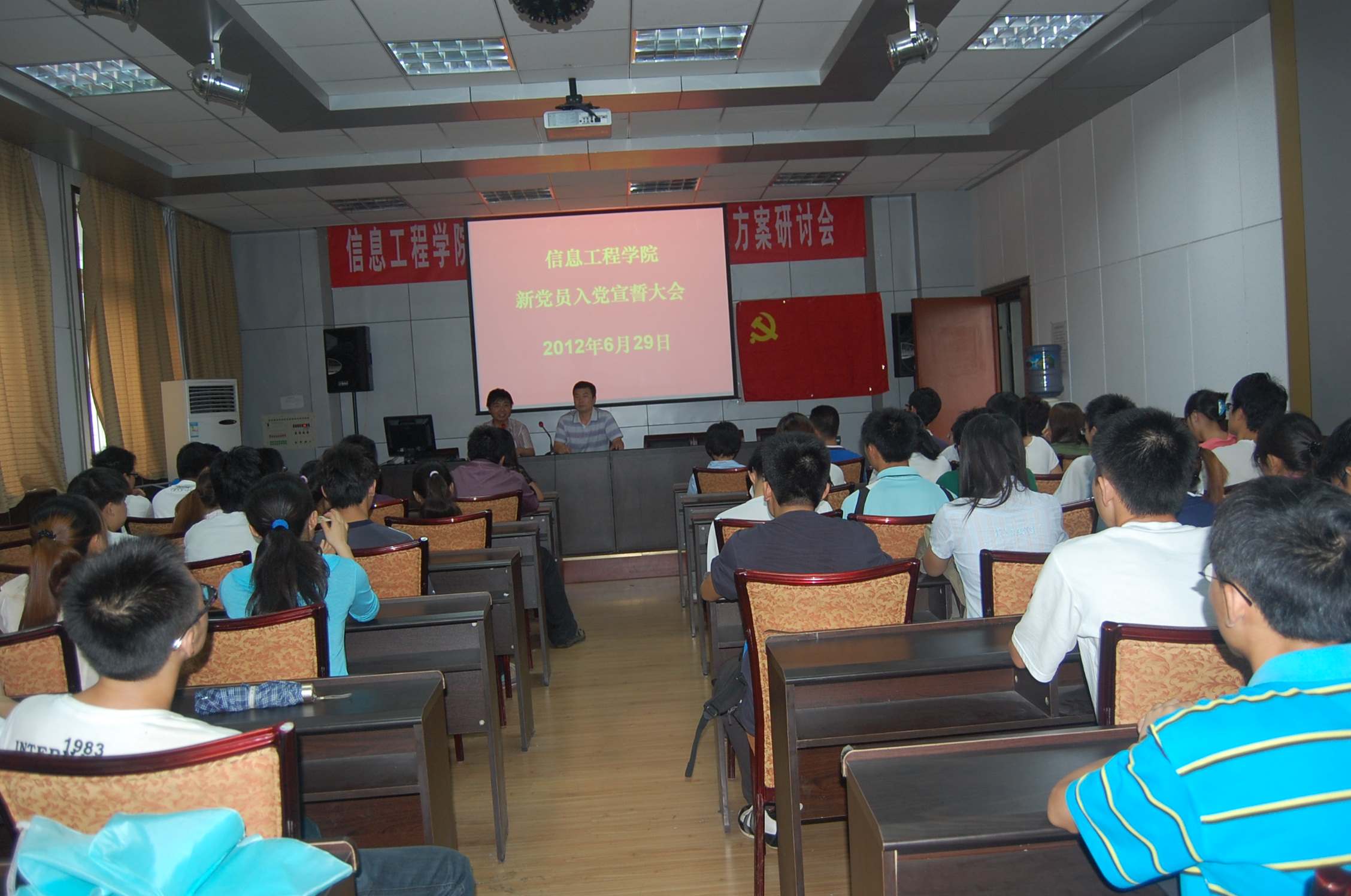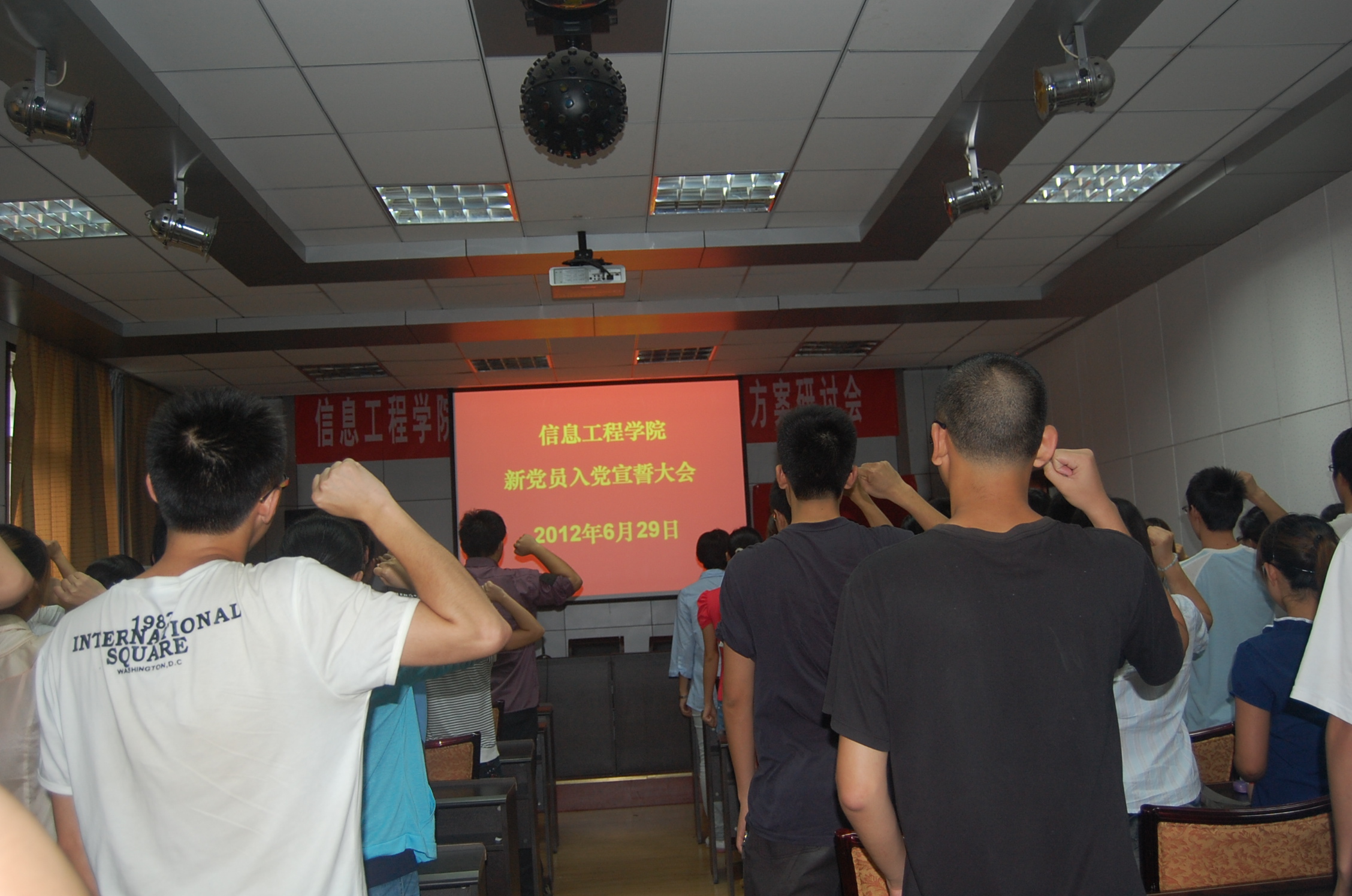 在学生党支部书记倪玲同志的带领下,85名新党员在鲜红的党旗前庄严宣誓,表达自己的赤诚之心。祖?同志代表新党员表明了决心,他表示要牢记入党誓言,刻苦学习,努力工作,不辜负党和人民的培养,以实际行动给党旗增光添彩。最后,学院党委何卫军副书记进行了讲话,他深情地回顾了中国共产党91年来所走的路程,再次向大家证明了没有共产党就没有新中国,没有共产党就没有中国特色社会主义事业的蓬勃发展。同时,他向新党员提出了殷切的希望,希望新入党的同志牢记入党誓言,胸怀共产主义远大理想,为中华民族伟大复兴而奋斗;希望新入党的同志进一步加强党的理论知识学习,提高党性修养;希望新入党的同志继承党的优良传统和作风,发挥党员先锋模范作用,以实际行动努力成为一名优秀共产党员。