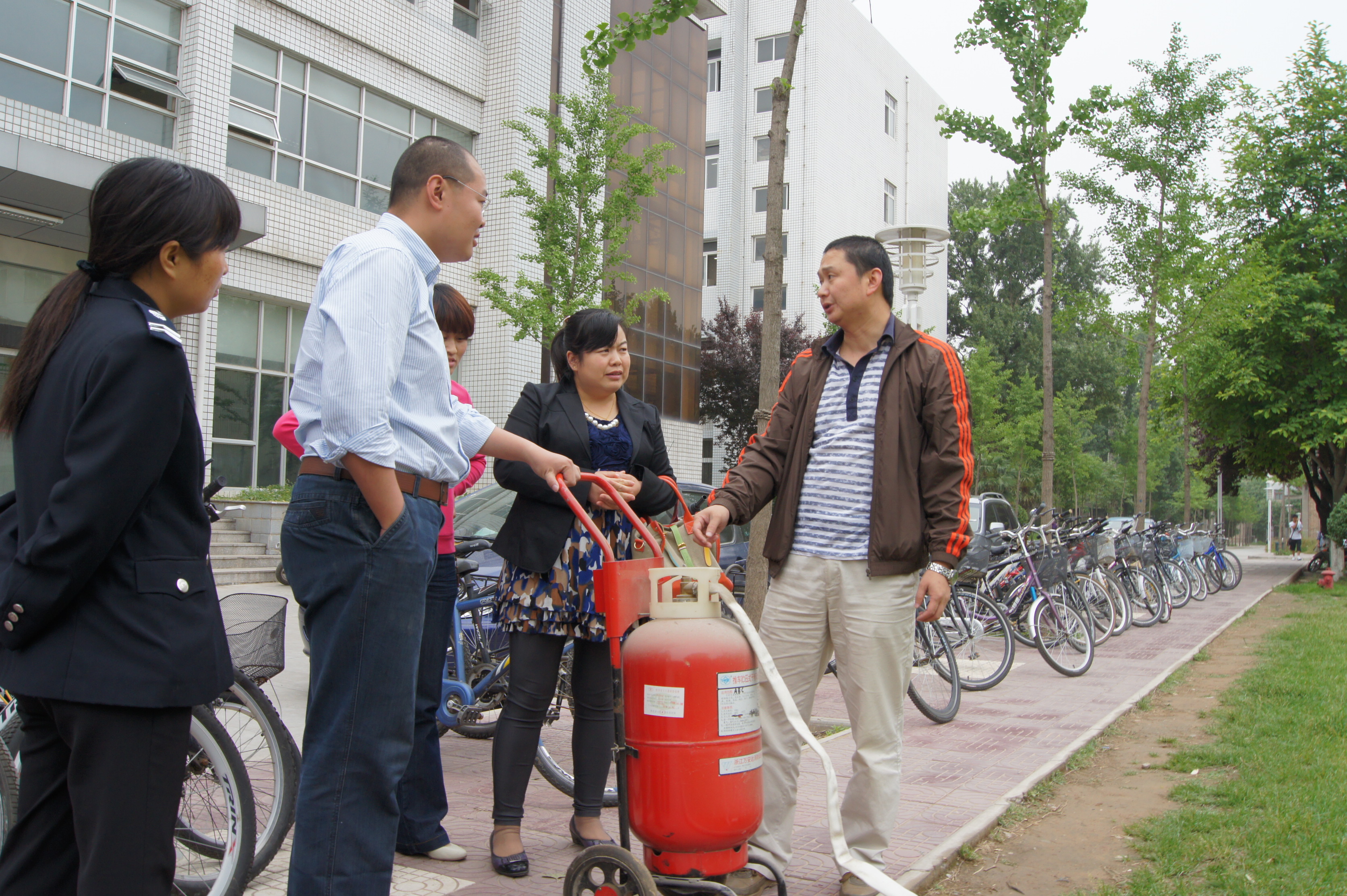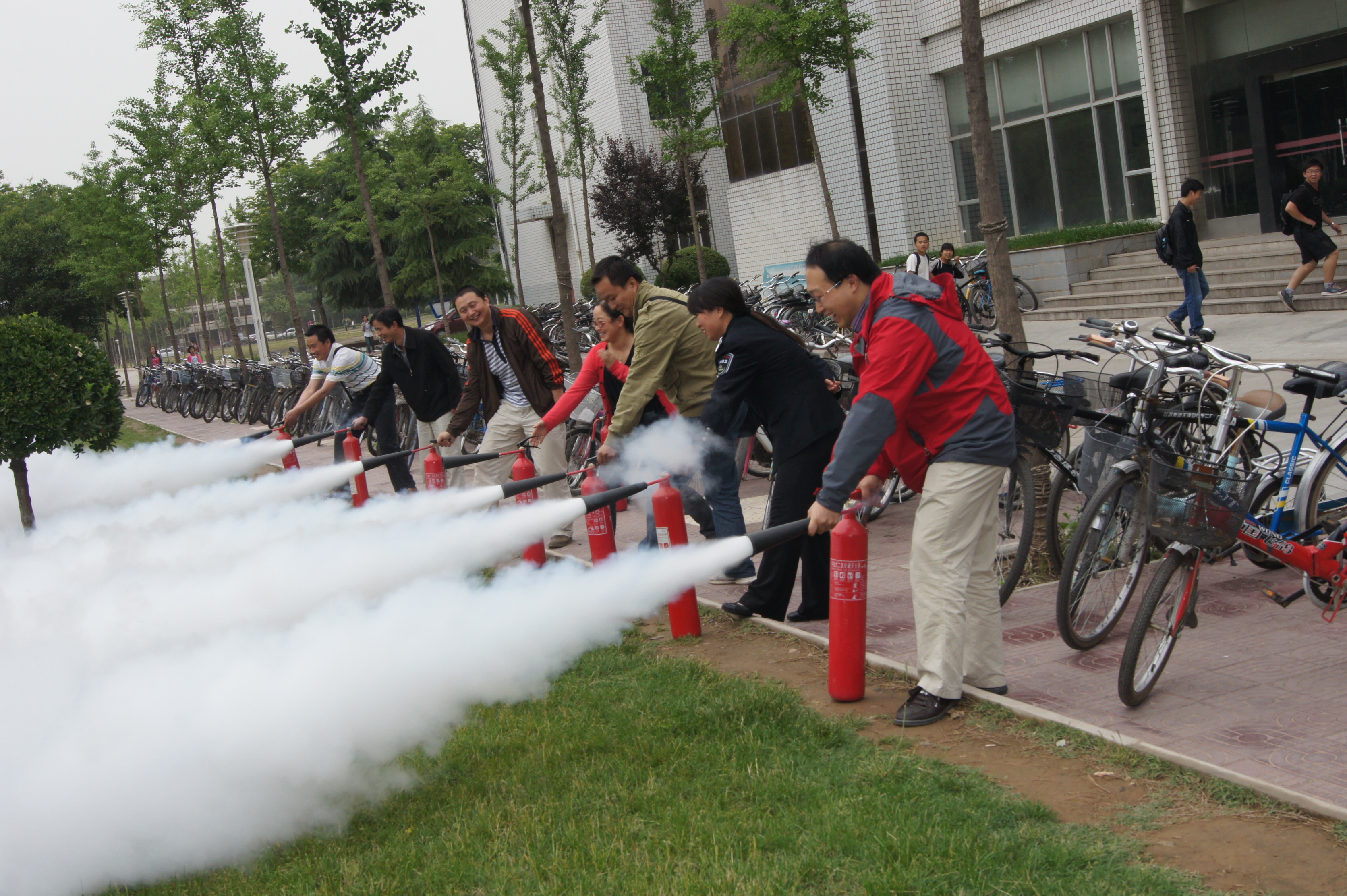 我学院实验室有100多个灭火器将要到期,借此机会学院组织教工进行灭火器的使用演练,像这样的消防演练和培训已经举行过多次。