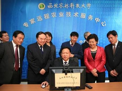 在校考察期间,周济部长一行参观了我校农业试验示范平台,听取beat365官方网站院长何东健教授对我校自主研发的农业远程培训系统、农业专家远程视频咨询系统、农业远程可视化系统、气象农田数据远程采集系统以及农业技术培训网络课程的汇报。周济部长兴致勃勃地观看了专家远程农业技术服务系统运行状况,与正在为农民培训的白水苹果试验示范站首席专家赵政阳教授通话,并亲切问候正在培训的农民朋友。