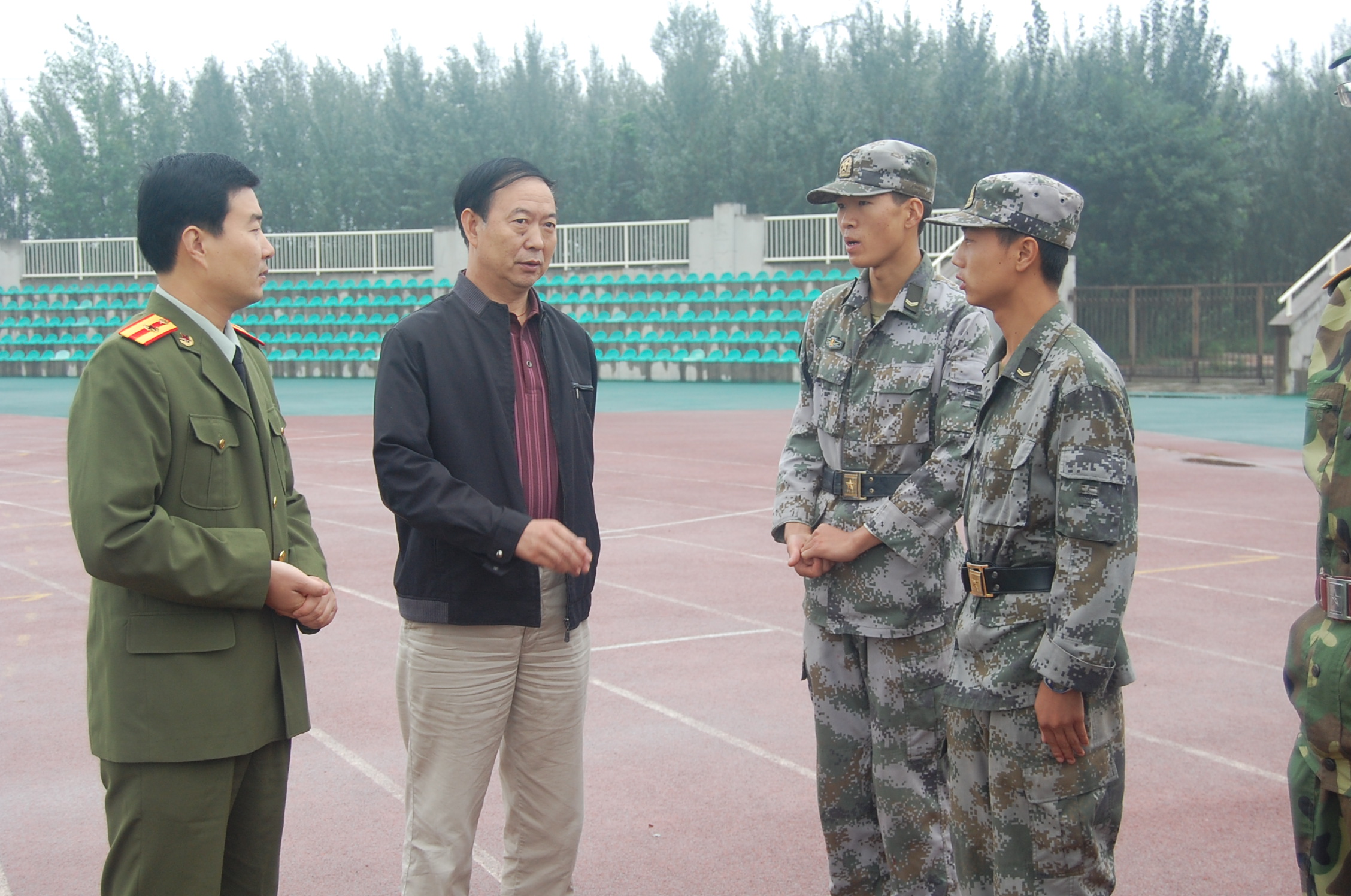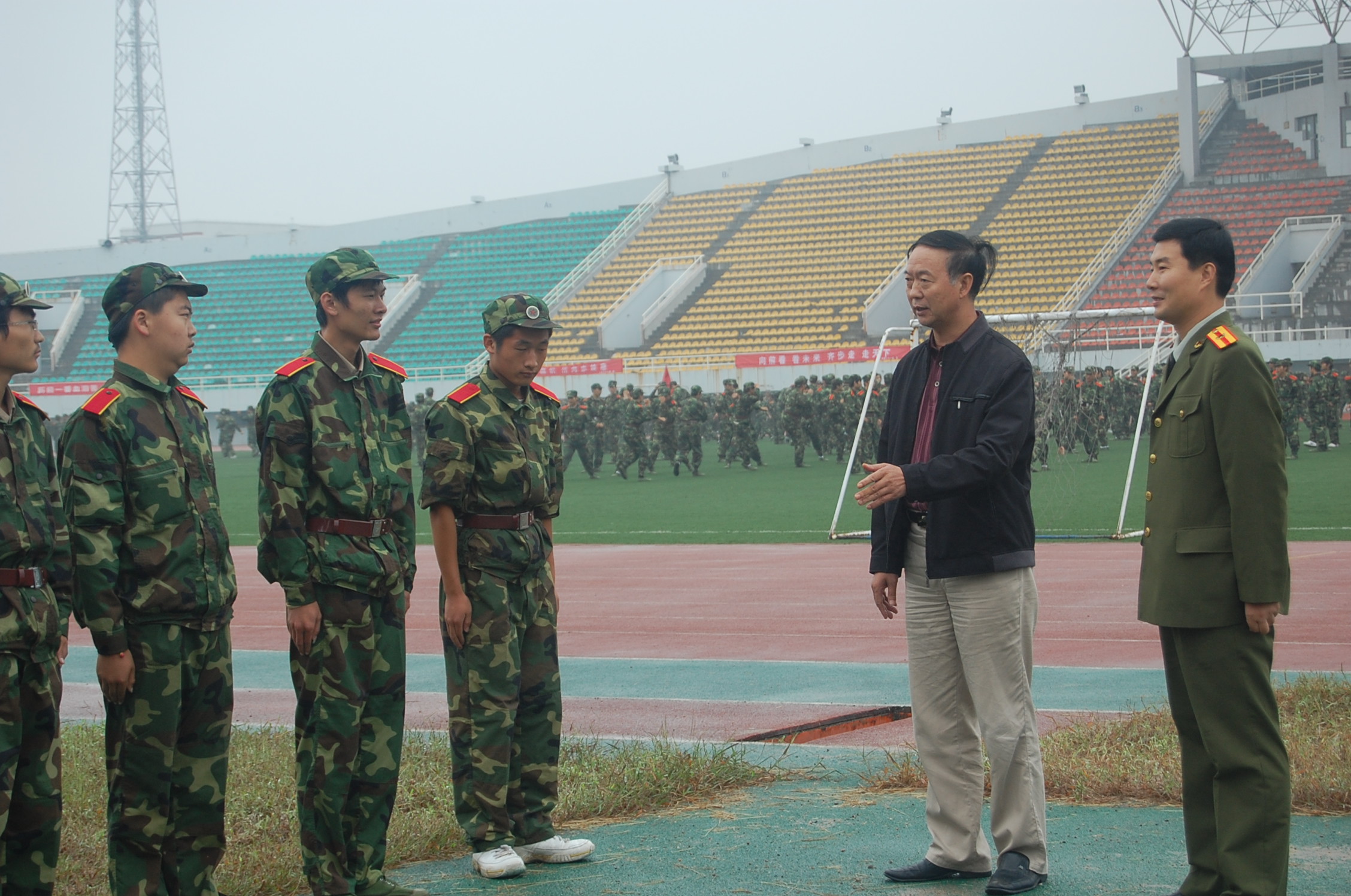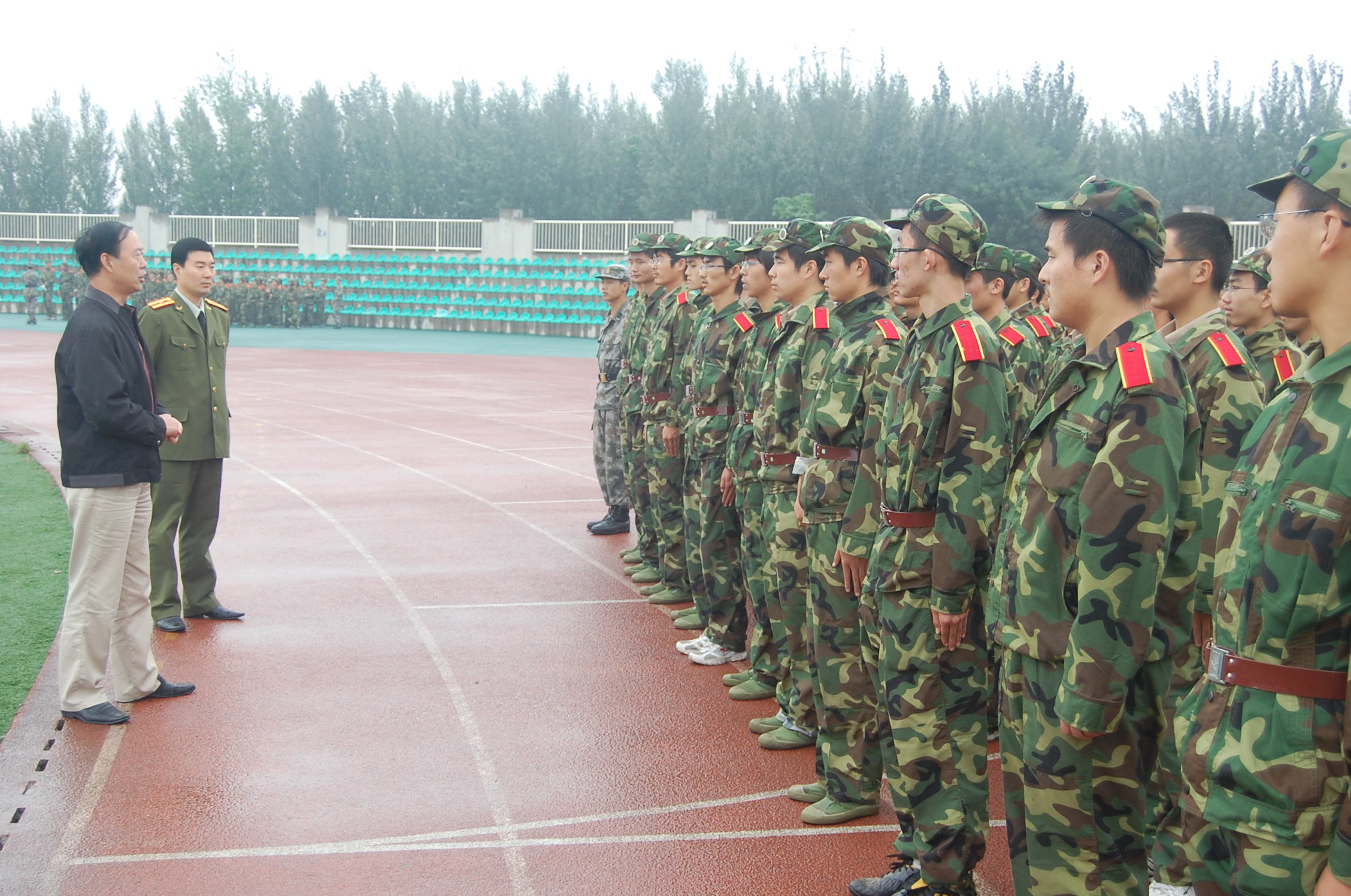 学院领导的看望与教导,给在蒙蒙细雨中努力训练的同学们带去了温暖,带去了鼓舞,激发了同学们更大的斗志和信心。
