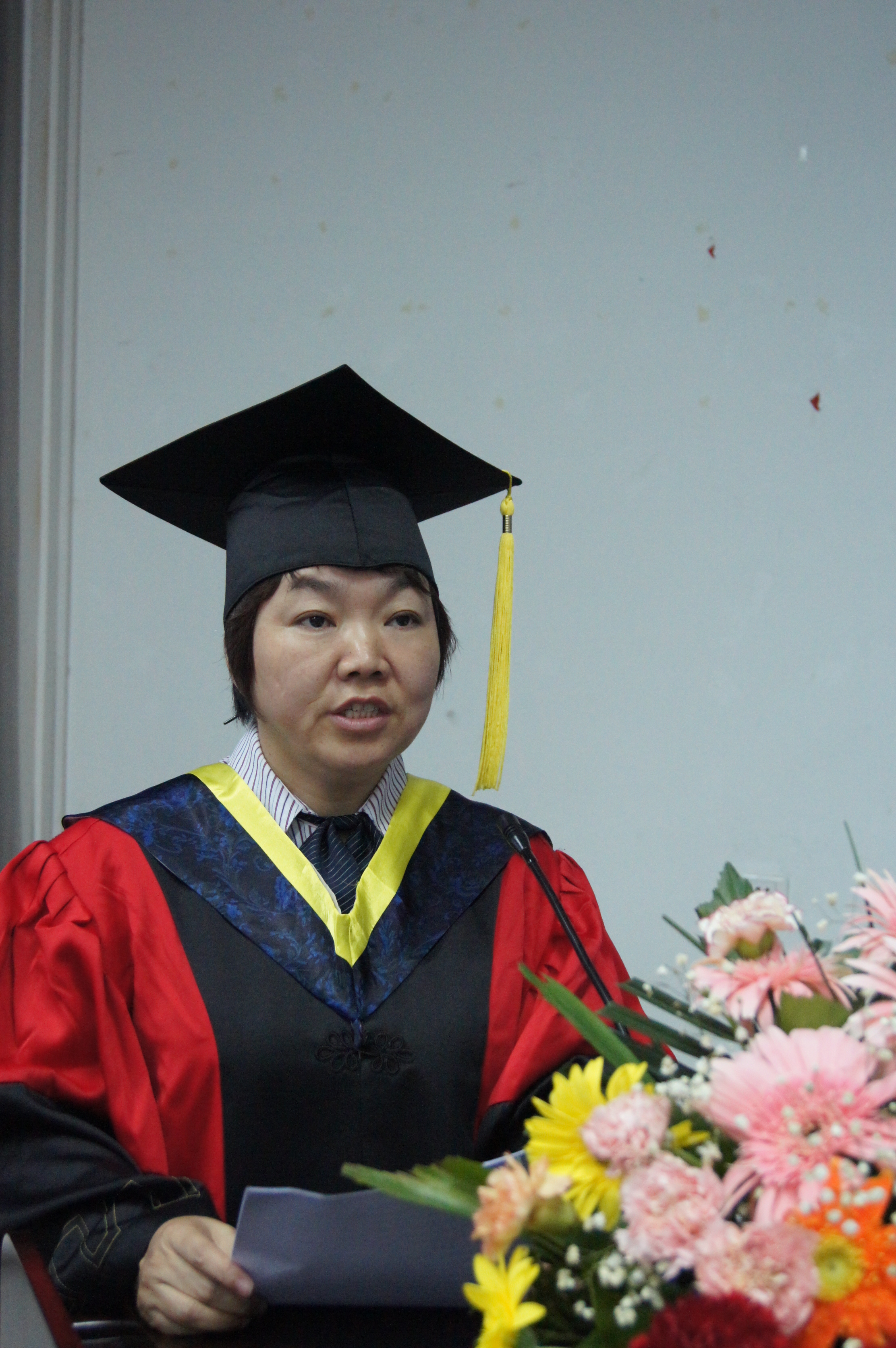 院长李书琴教授进行了热情洋溢地致辞,她代表全院师生员工学院向即将走向工作岗位或继续深造的全体毕业生表示诚挚的祝贺。并对毕业生提出了四点希望,一是希望同学们能够永远保持一颗进取之心,脚踏实地,追求卓越,要永远保持学习和思考的热情,求知若渴,虚心若愚,不断探求新知、追求真理,永葆思想的活力。二是希望同学们能够时刻坚守一份责任之心,甘于奉献,勇于担当;三是希望同学们能够持久拥有一颗豁达之心,热爱生活,宽容自信。四是心存感恩,贡献社会,心系母校,继续关心母校发展,为母校的改革建设献计献策,奉献自己的一份力量。