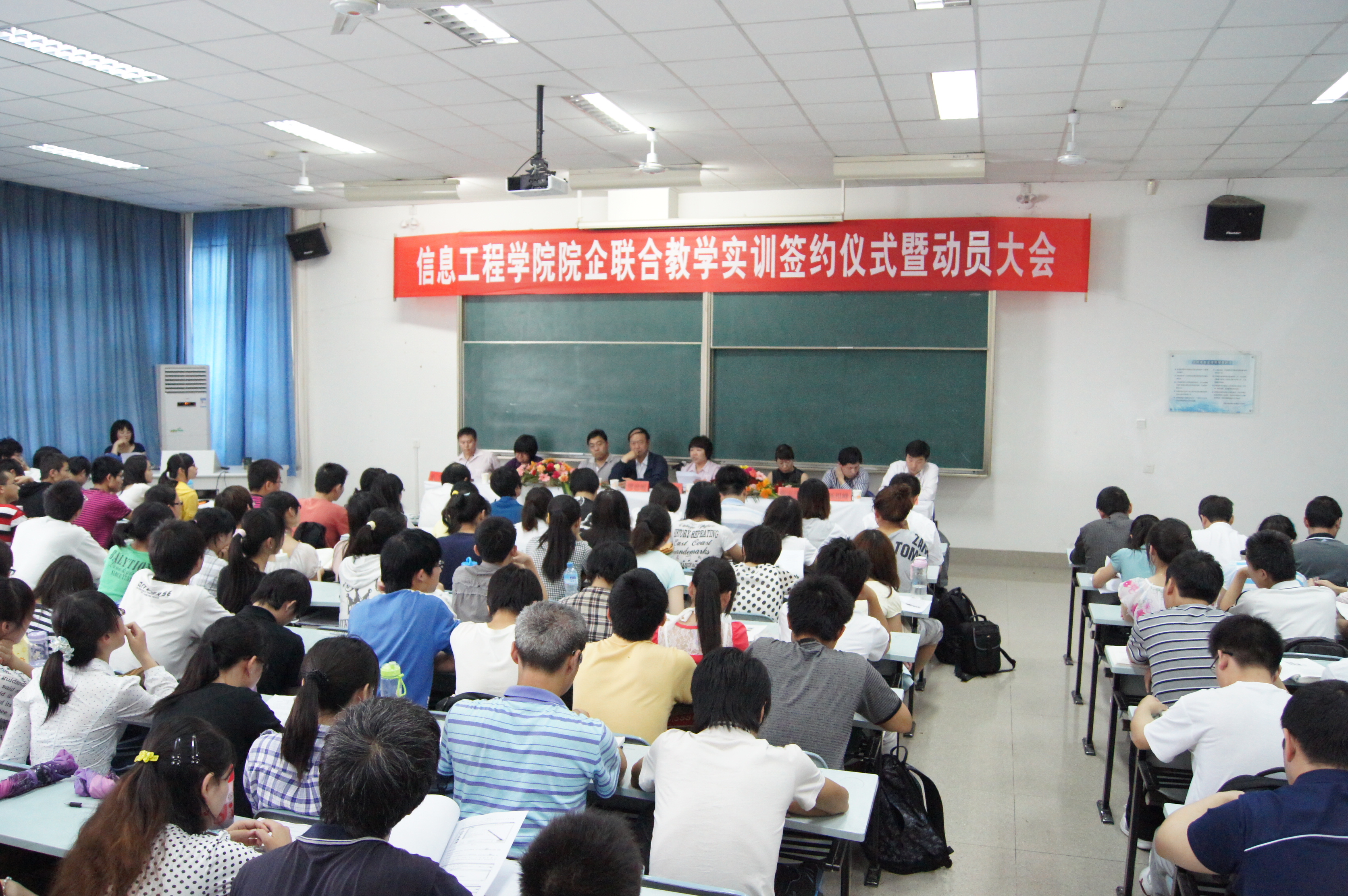 会上,学院领导介绍了本次实训的基本情况,为2008级254名学生介绍了院企联合教学实训的目的、意义及培养目标,并对学生从实训态度、实训的安全纪律等多方面提出了明确、严格的要求,全体同学签订了教学实训学生承诺书。合作的三家企业领导向同学们详细讲解了实训方案及考核办法,学院与三家企业签订了“学院企业学生教学实训协议书”。