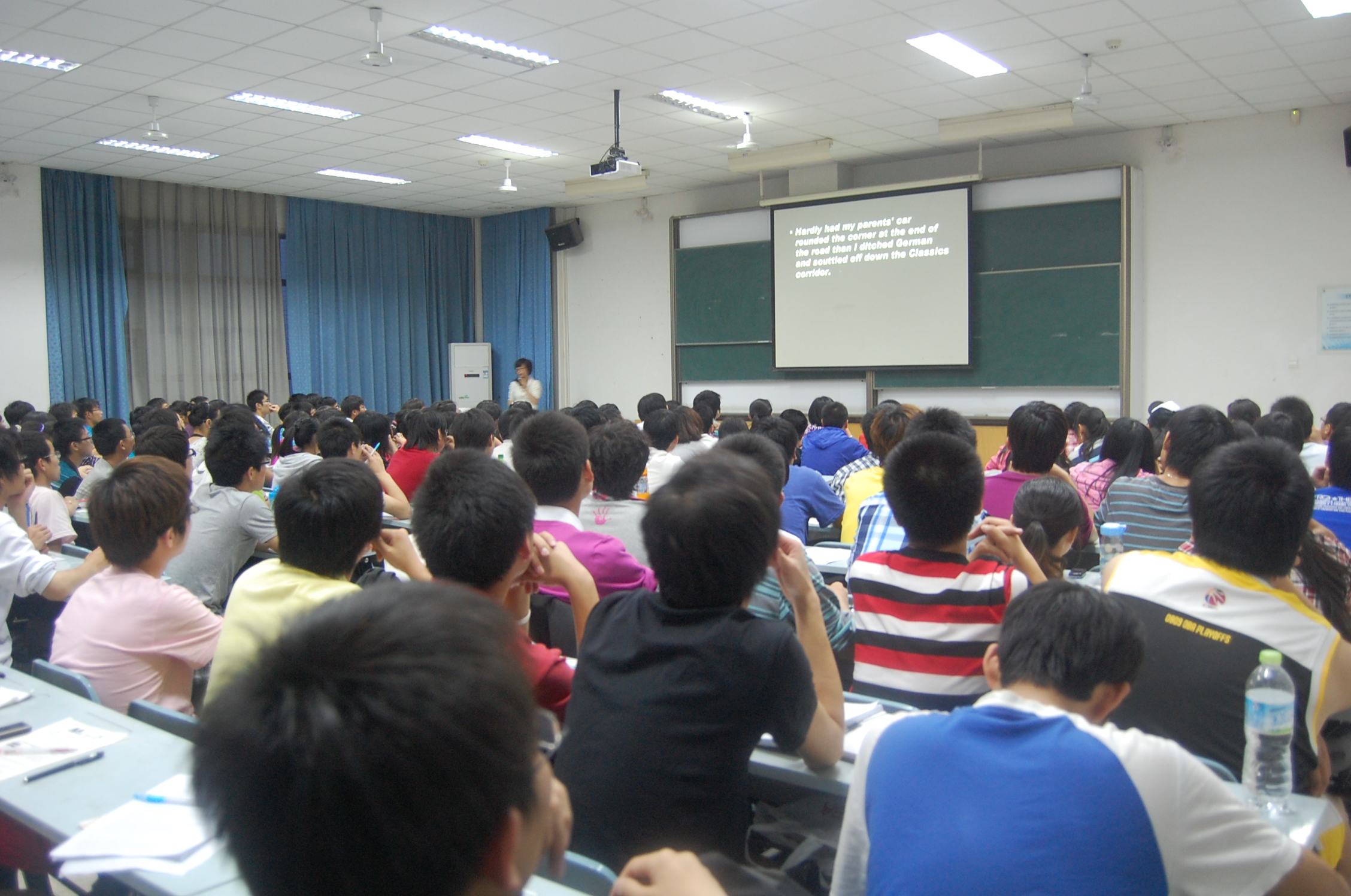 5月5日晚,beat365官方网站200余名学生在计算机教学中心多媒体教室进行了第一次课。本次辅导,同学们热情高涨,教室内座无虚席。在该次辅导课上,外语系两位老师用幽默诙谐的言语成功调动了学生的积极性,活跃了全场气氛。