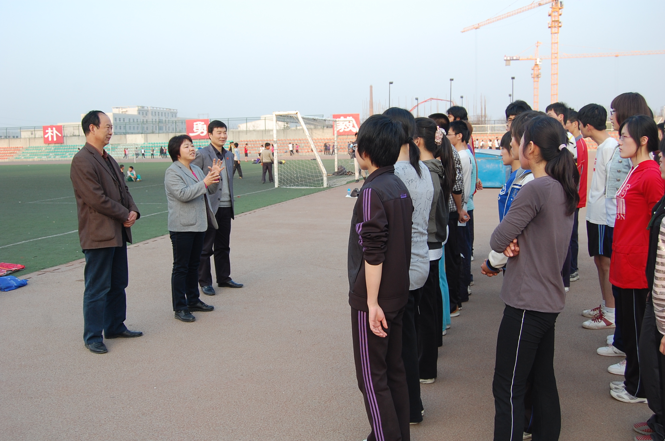 学院领导到操场看望学生运动员