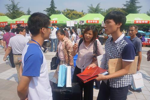 迎新工作人员为学生、家长解答疑问