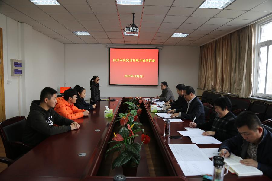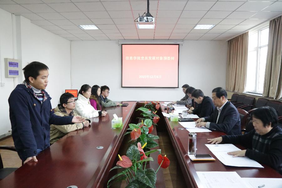 为贯彻落实党员发展工作实施细则,保证党员发展质量,beat365官方网站党委于2015年12月6日下午2:00在学院216会议室对2015年下半年党员发展对象开展预答辩。beat365官方网站党委书记宋西德、党委副书记何卫军、党建特邀组织员张勤等七位老师担任评委,各党支部书记、全体党员发展对象与会。