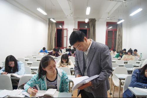 何卫军副书记检查新生自习情况