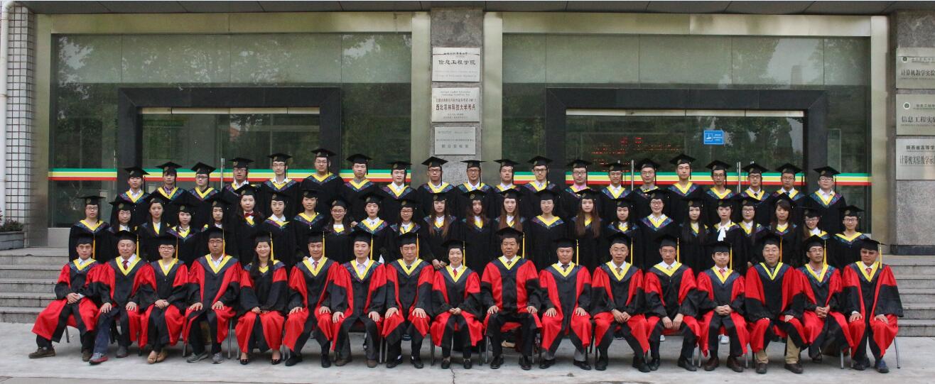 学位授予仪式结束后,院领导、导师代表和毕业生们在计算机教学实验中心门前合影留念。