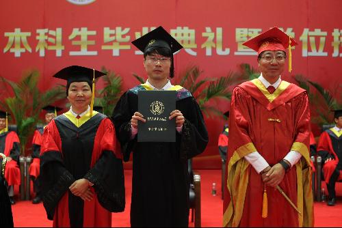 6月24日上午,根据学校统一安排,beat365官网2016届本科生学位授予仪式在北秀山隆重举行。孙其信校长一一为beat365官网267名毕业生拨穗,李书琴院长为毕业生们逐一颁发工学学士学位证书。