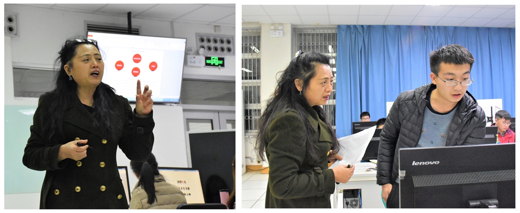 电子商务16级的同学们说,外教老师从结果来论述,从实践出发,边讲授边实践的独特教学方式让我们可以更好的理解新的知识、掌握新技术。课程中穿插的英语让我们潜移默化地学会了很多专业名词,便于专业课程的学习和提升,同时加强了英语听、说、读、写能力。 该课程的引入培养了教师多样化专业教学能力,强化了团队师资力量。同时对深化课程体系建设,引进"发现式"教学方法起到重要作用。