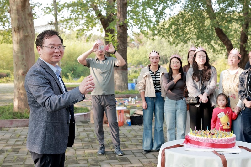 9月24日,学院工会在户外成功举办第二期教职工集体生日庆祝活动。现场悬挂着“清秋送爽 共贺生辰 凝心聚力 温暖前行”的温馨横幅,教师们亲手制作的气球串在秋风与阳光下格外鲜艳,营造出浓厚的生日氛围。近40名教职工欢聚一堂,共庆生日。活动由学院工会主席、副院长崔卫芳主持。