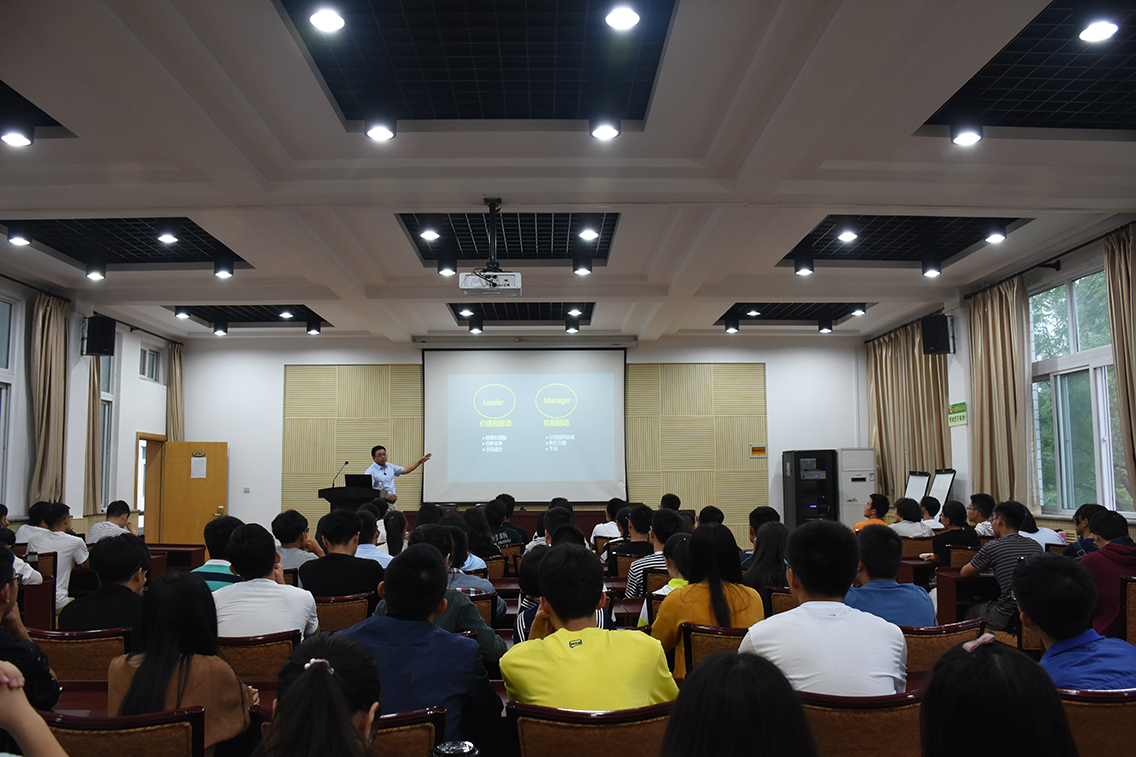 讲座伊始,张雁冰老师首先解释了职场中“Leader和Manager”的区别,引导学生在大学期间应注意培养聪明、乐观、皮实、自省四项基本素质。期间,他结合个人成长经历和同学们进行互动交流,为学生们提供了很多实用的建议。