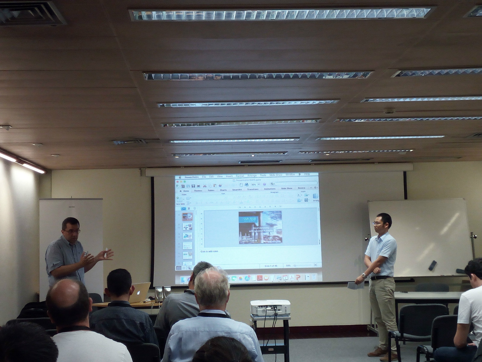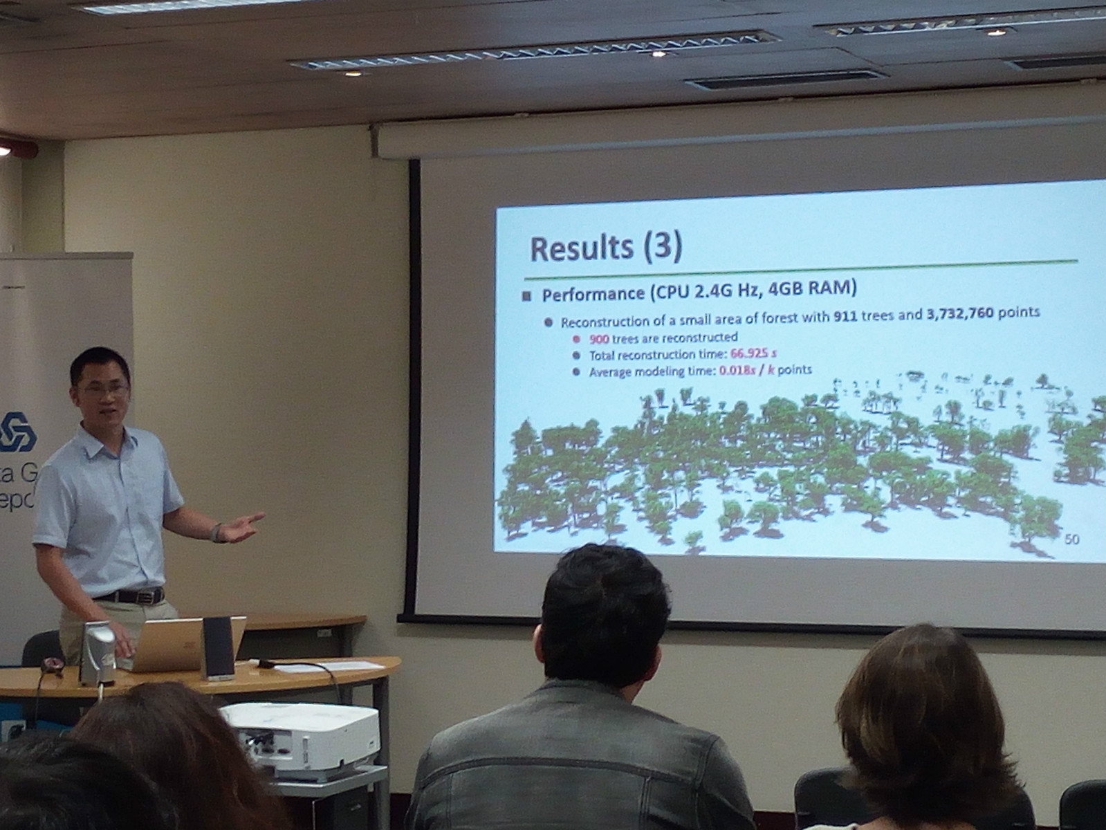 本次会议收到投稿论文45篇,录用15篇,来自中国的7篇,我校1篇。特约报告7场,我校beat365官方网站胡少军应邀做了题为“Efficient tree modeling from airborne LiDAR point clouds”的特约报告,并应邀作为Session主席主持了“去噪”主题分会场的报告过程。并在会场展示了研究生黄正宇制作的题为“Realistic Modeling of Smooth Tree Ramifications Based on Catmull-Clark Subdivision”的学术海报。