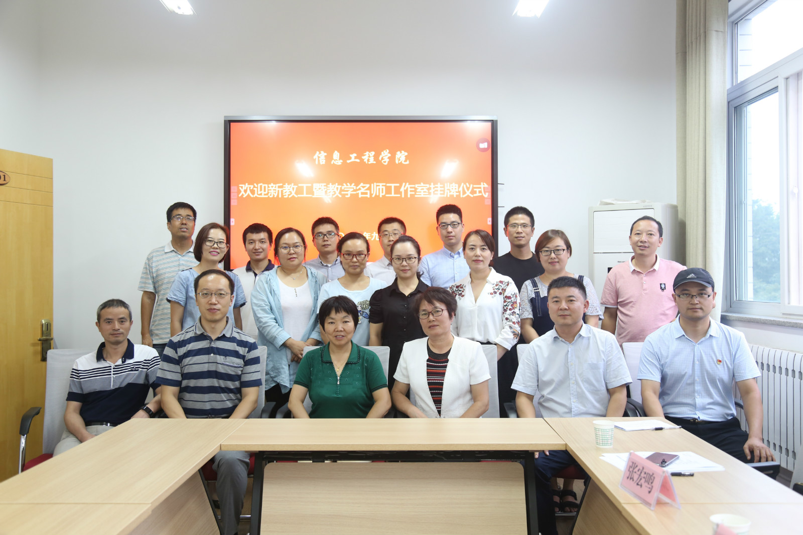 9月5日下午,beat365官方网站举行迎新教工暨教学名师工作室挂牌仪式。教发中心主任姚晓霞、学院党委书记党青、教学副院长张宏鸣、各系(部)主任、党支部书记、2018年新进教工及新教工指导教师参加了活动。院党委副书记翟立主持仪式。