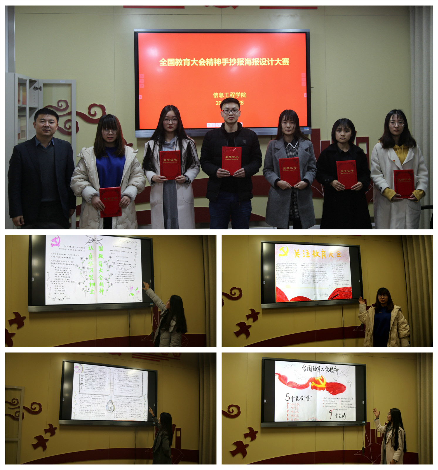 院党委副书记翟立对本次活动高度认可,他谈到:“教育大会的主体是在座的的各位同学,‘纸上得来终觉浅,绝知此事要躬行’,通过亲手设计手抄报或海报,同学们能够在制作的过程中更加深刻的理解教育大会的精神。改革开放40年来我们国家有了翻天覆地的变化,除了教育方面,同学们也应当主动了解党的最新成果,不然只会‘不识庐山真面目,只缘身在此山中’。此外,各位同学应做到‘欲穷千里目,更上一层楼’,尤其是学生党员,应体现出党员的先进性,思想上走到前列,用个人的行为践行社会主义建设,挑起民族复兴的大任。”