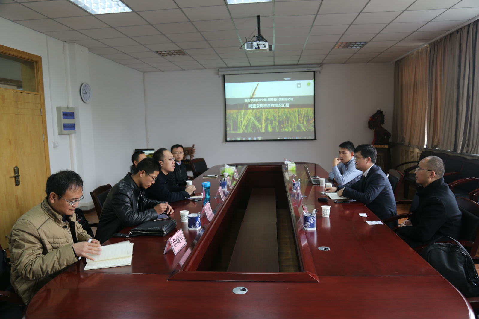 为了适应社会发展需求,进一步做好大数据人才培养。应学院邀请,11月29日上午,阿里云计算有限公司西安行业总监程吉星一行3人来院洽谈校企合作事宜。学院副院长(主持工作)张宏鸣、大数据课组教师刘全中、刘斌、蔚继承、于建涛参加了洽谈会。