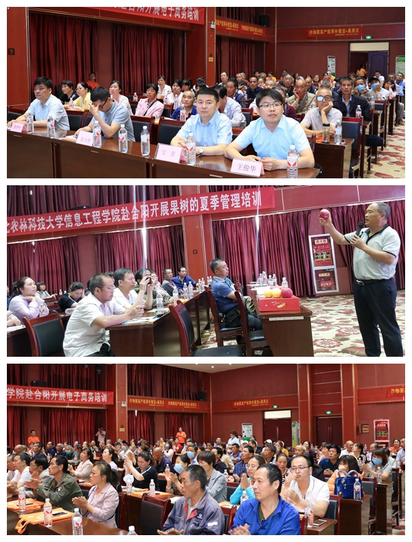 培训会上,白水苹果试验站站长、苹果专家王雷存研究员、葡萄示范站驻站专家张宗勤副教授、学校测试中心原副主任杨吉安副教授、beat365官方网站电商系主任杨会君副教授先后作《苹果产业形势及栽培关键技术》《葡萄优质高效栽培实用技术》《农产品质量安全与质量认证》《电子商务-数字经济助推器》专题报告。报告会后果树专家和种植户一同转战到合阳果农人基地进行现场手把手培训。