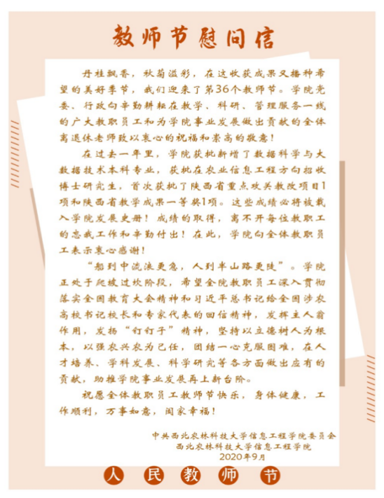 2020年,学院部门工会以习近平新时代中国特色社会主义思想为指导,在校工会和学院党委的领导下,紧密围绕学校、学院中心工作,充分发挥工会在部门工会在学院工作中的“桥梁”和“纽带”作用,进一步营造了温馨和谐的良好氛围,调动了教职工投身学院事业发展的积极性,圆满完成了各项工作。积极关注并解决教师关切问题,在疫情防控常态化下,安装了自动测温设备、会议室配置了视频会议设备,制定了视频会议设备使用流程、会议室使用管理规定,在会议室张贴了温馨提醒,为教师开展学术交流等提供了便利和良好环境;积极与学校后勤处沟通,申请对办公楼副201进行改造,对实验楼地板、吊顶、灯、卫生间等存在问题进行集中处理,为师生提供更大、更安全、更舒适的空间与环境;在“三八节”、教师节、寒假等重要节点,学院慰问了专家教授、督导组、离退休职工及病困职工,协助教职工操办红白事,举办了“大手牵小手、亲子健步走”“尊师重教,感恩教师”等活动,举办了毕业典礼与学位授予仪式,学生表彰暨迎新年师生联欢晚会,增强了师生的归属感;积极组织教职工参加学校工会组织的认领“微心愿”、乒乓球、羽毛球、迷你马拉松等活动,增强了教师的责任感与集体荣誉感。