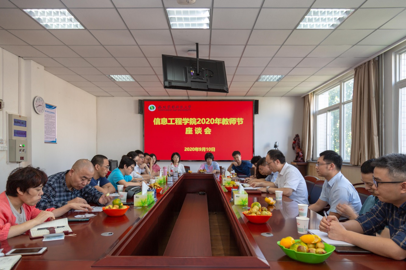 座谈交流,共话立德树人。学院于9月10日下午召开了教师节座谈会,院领导班子、全体在校教授、系(部、室)主任、近三年新入职教师30余人参加了座谈。学院党委书记党青主持座谈会并讲话,院长张宏鸣发表节日致辞。与会教师一起学习了习近平总书记向全国广大教师和教育工作者节日问候。特别邀请陕西省“特支计划”教学名师类入选者李书琴教授、“我心目中的好导师”获得者张志毅教授、“我最喜爱的老师”获得者田彩丽老师结合自身成长经历分享了站好讲台、做好科研、践行立德树人使命的心得并对新教师练好基本功、站好讲台、个人发展等提出了中肯建议。座谈会气氛热烈,凝聚了人心,激发了青年教师向优秀看齐,牢记为党育人、为国育才的使命,忠诚党和人民的教育事业争做“四有”好老师的决心。
