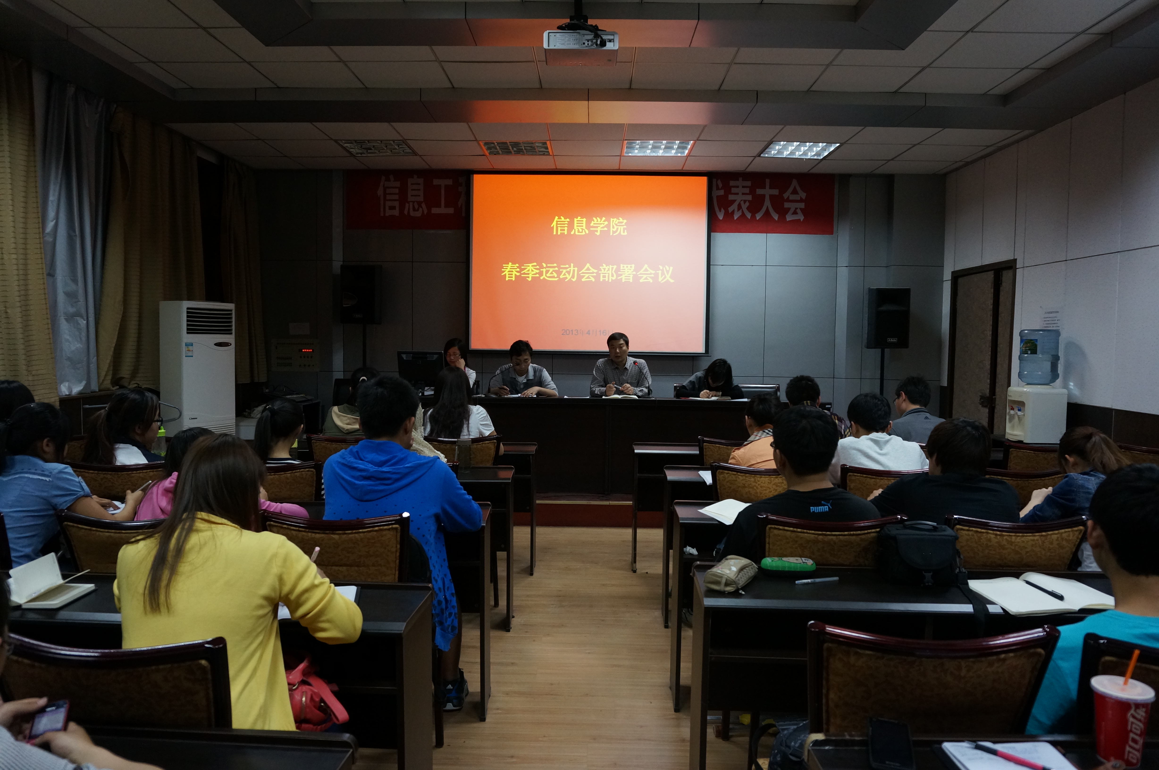 4月16日晚,beat365官方网站团工委学生会在二层会议室召开了春季运动会部署会议。院党委副书记何卫军、办公室秘书王淑珍老师、团工委书记桂恺老师以及辅导员倪玲老师和仵亚伟老师参与了此次会议。与会人员还有学生会主要干部成员。