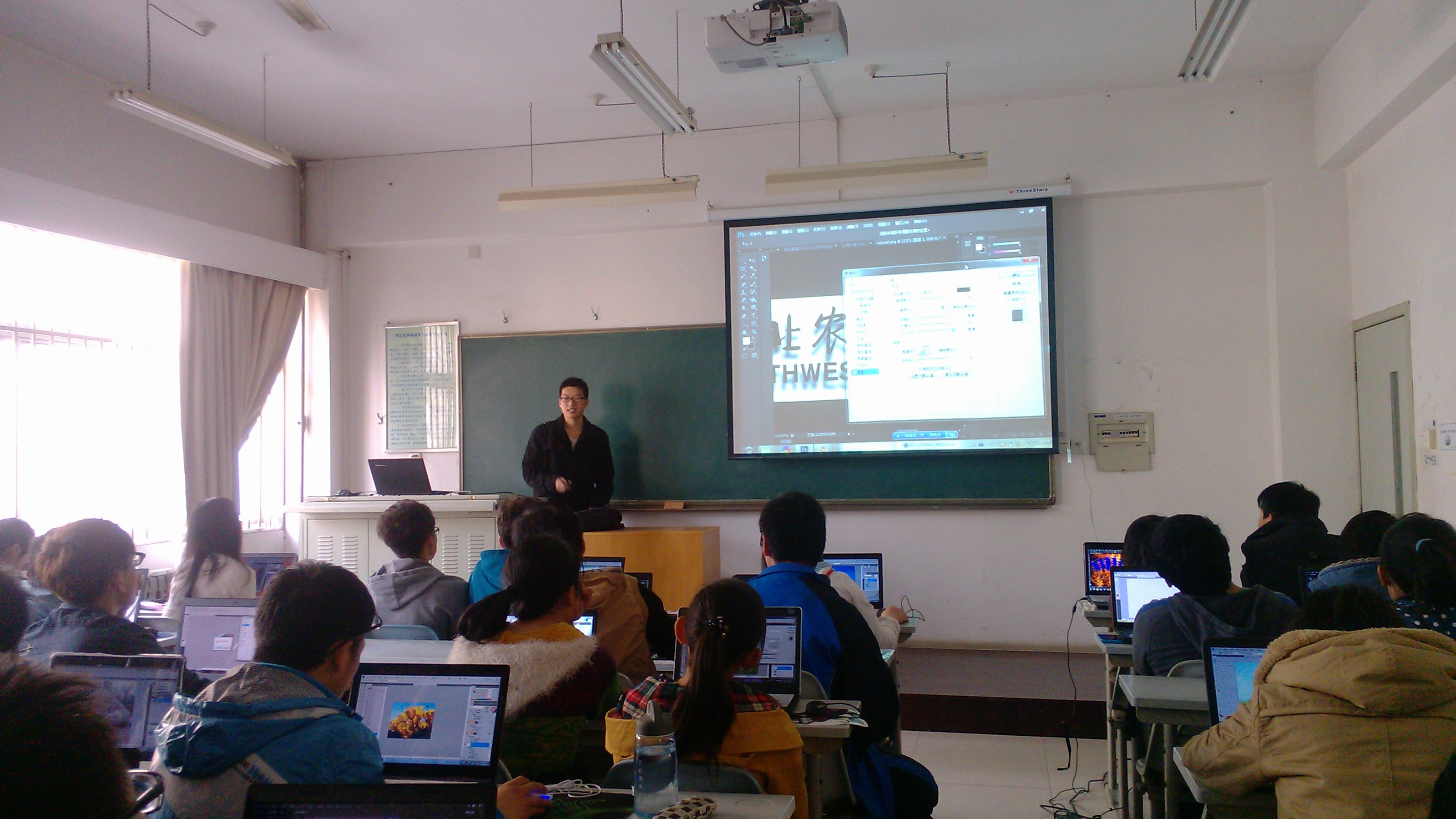 本次活动主要由新动力动画制作协会为协会成员、社联宣传部等工作人员以软件实例讲解形式进行培训,新动力动画制作协会会长、beat365官方网站学生会副主席陈金亚同学以丰富的PhotoShop经验和知识,详尽深入地介绍了PhotoShop中各个工具的用法、图层蒙板的作用、图像调整的用法和滤镜的使用等,解答了同学们在学习过程中的疑惑。以实际操作的形式展示在该软件使用过程中容易出现的问题,引用实例、条理清晰。与成员一起做了练习作业,巩固课堂上讲解的知识,为以后的工作进行了良好的铺垫。整个培训进行得有条不紊,携带电脑的协会成员跟着学习,其他同学边听边记、纷纷响应,在此次培训会中受益匪浅。