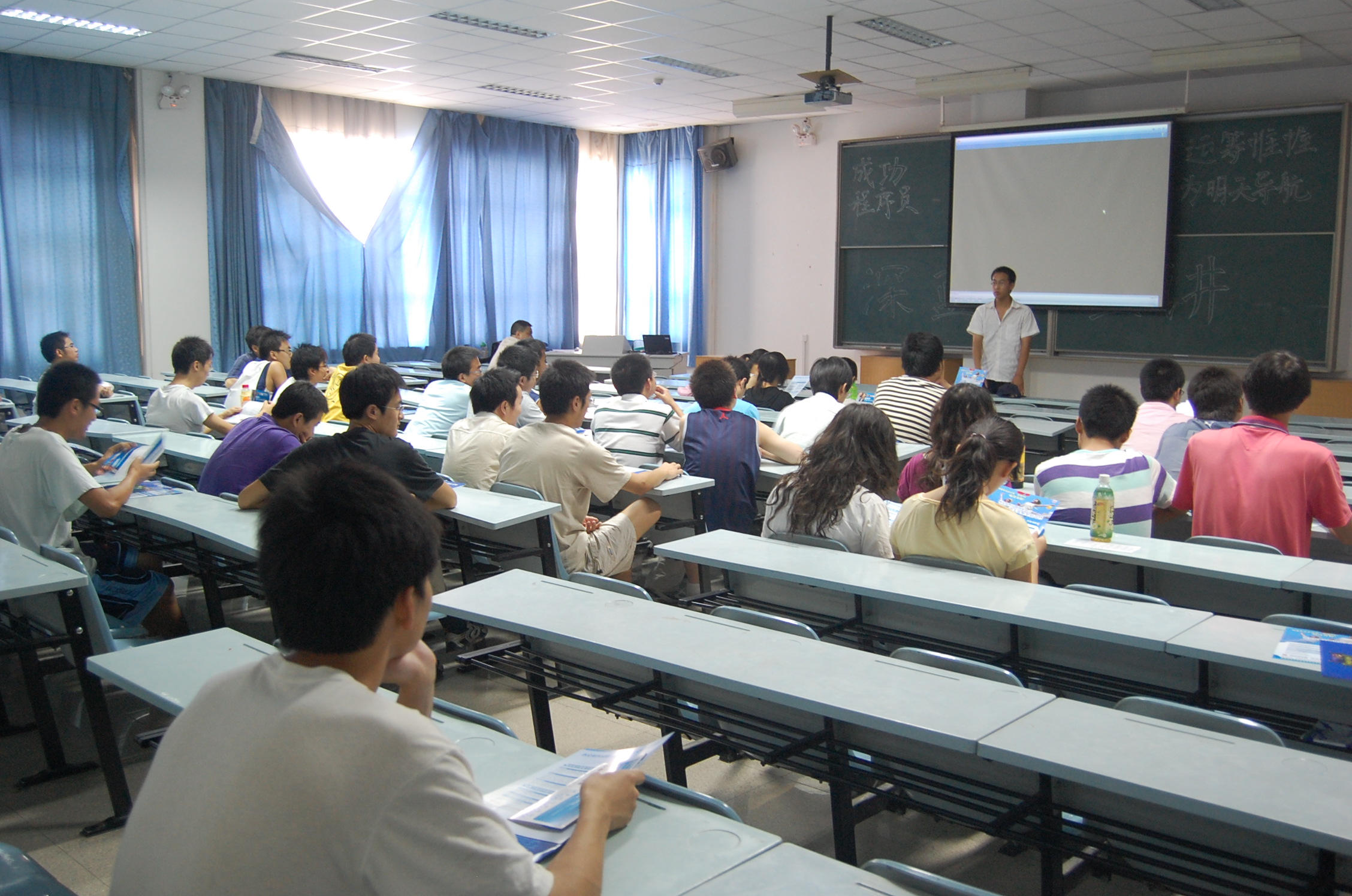 6月24日,西安深蓝软件有限公司技术总监南敏庚先生一行来beat365官方网站招聘暑期实习生。公司在beat365官方网站计算机教学中心多媒体教室进行了宣讲,向2006级同学介绍了深蓝软件公司的规模、发展方向、主要技术以及招聘实习生的要求等,希望同学们积极应聘实习生岗位,到深蓝软件发展。宣讲会结束后,南总监还与同学们进行了求职经验、计算机行业发展等方面的交流,回答了同学们普遍关心的问题。