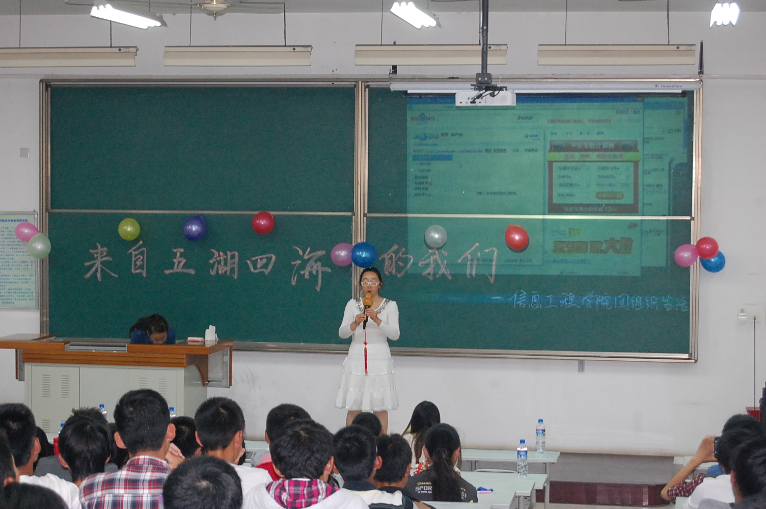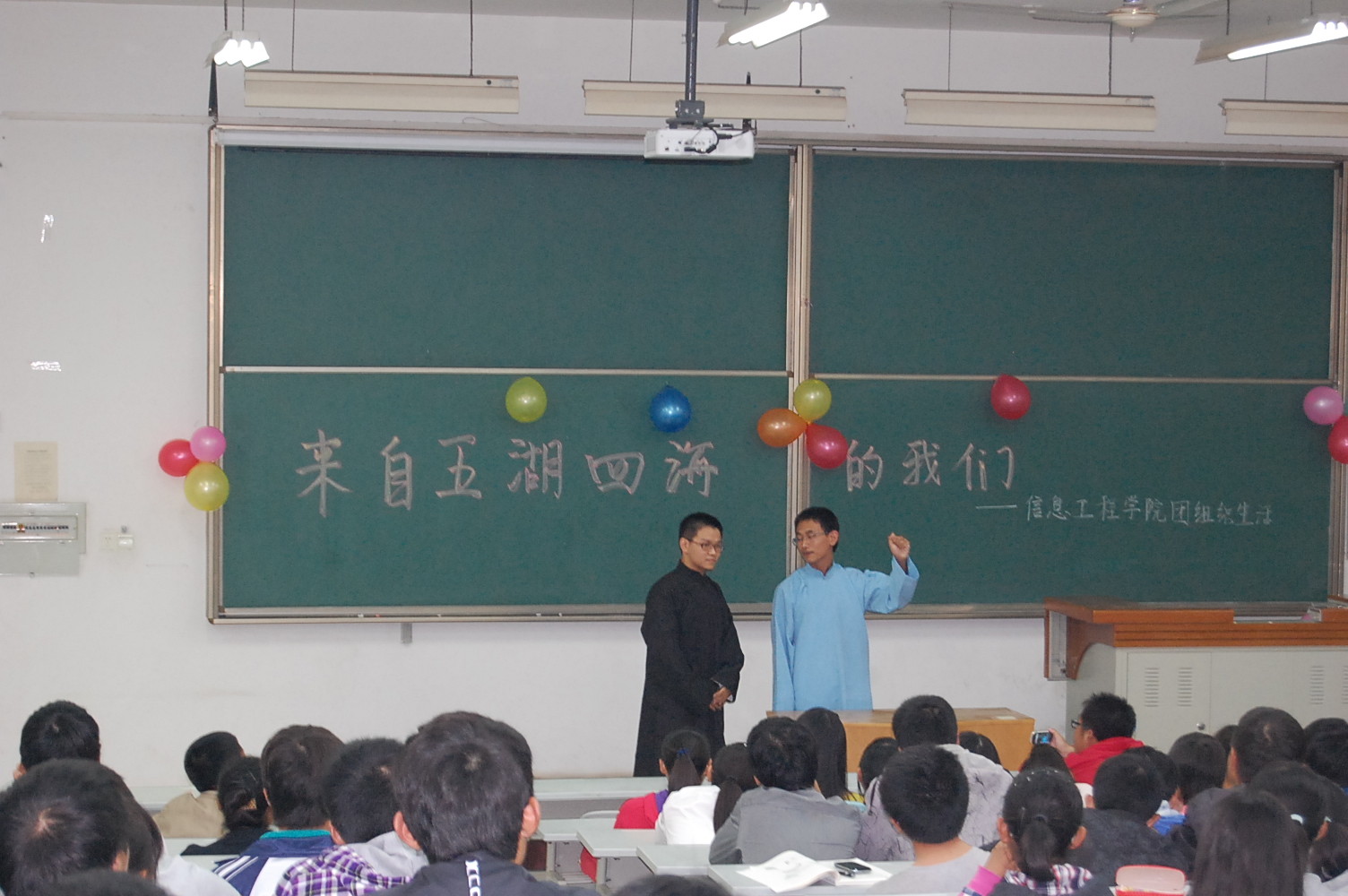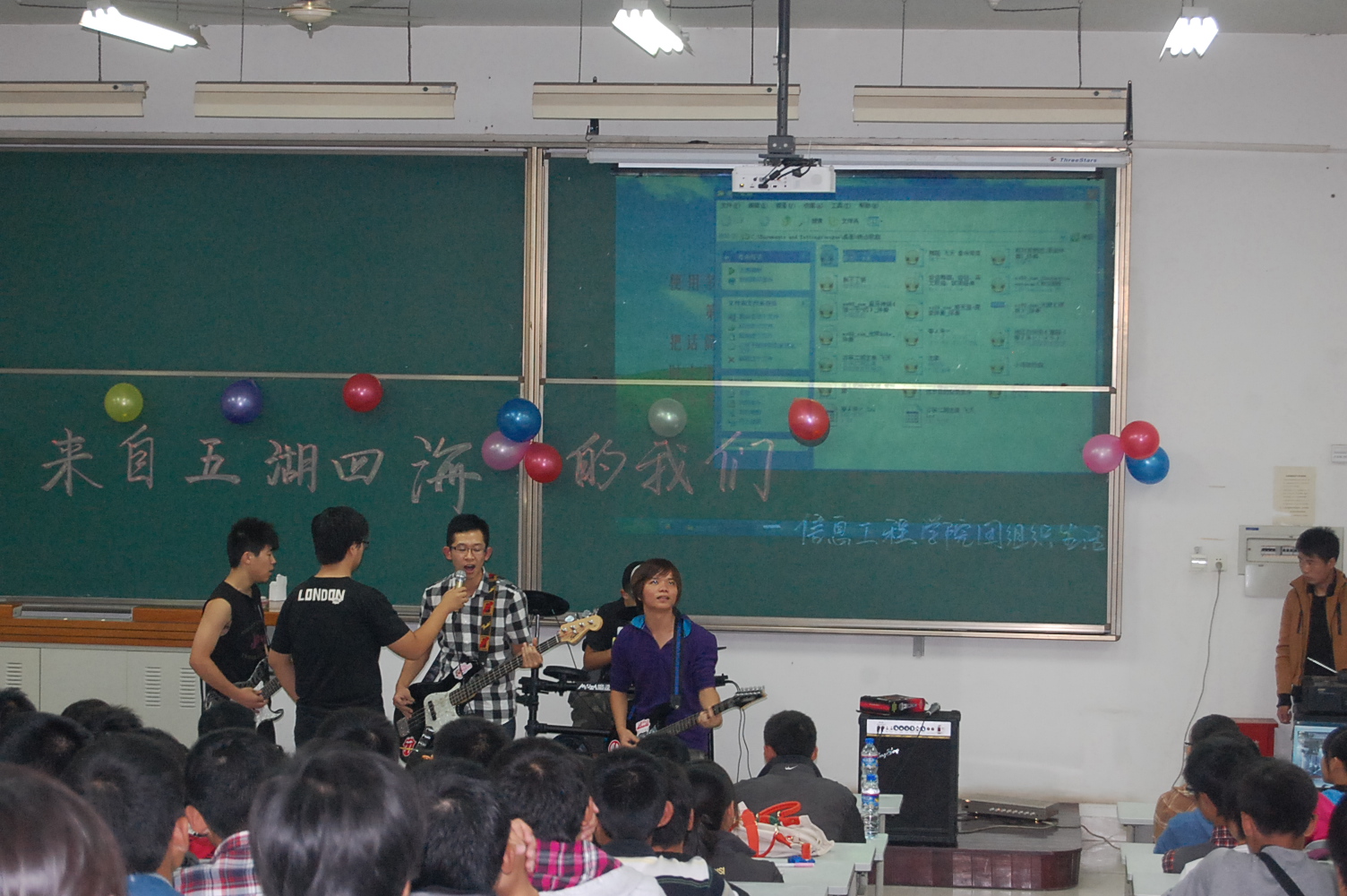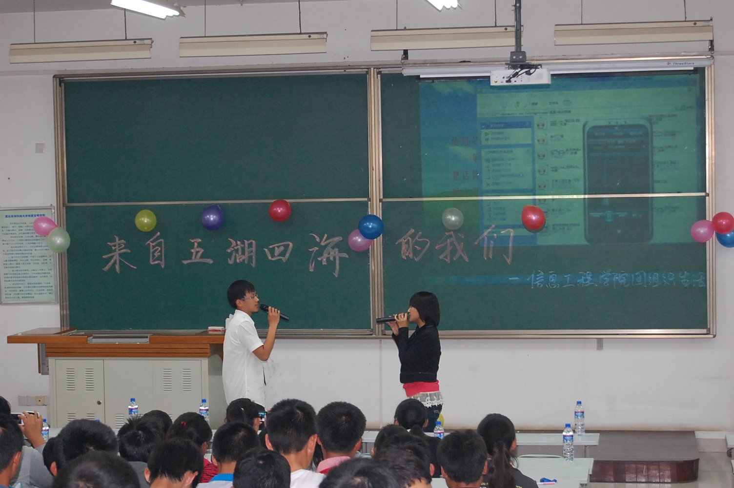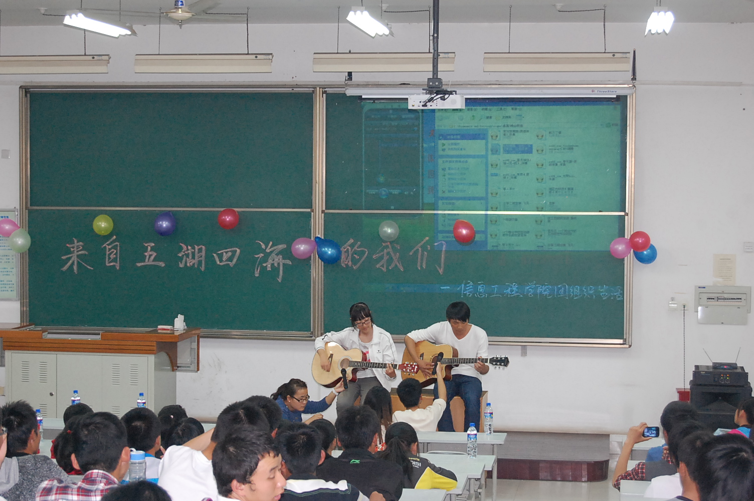 9月25日晚7点半,beat365官方网站在8T阶梯教室举行了2012级新生迎新晚会。团工委书记桂恺、辅导员倪玲、仵亚伟、郭峰来到活动现场观看晚会。