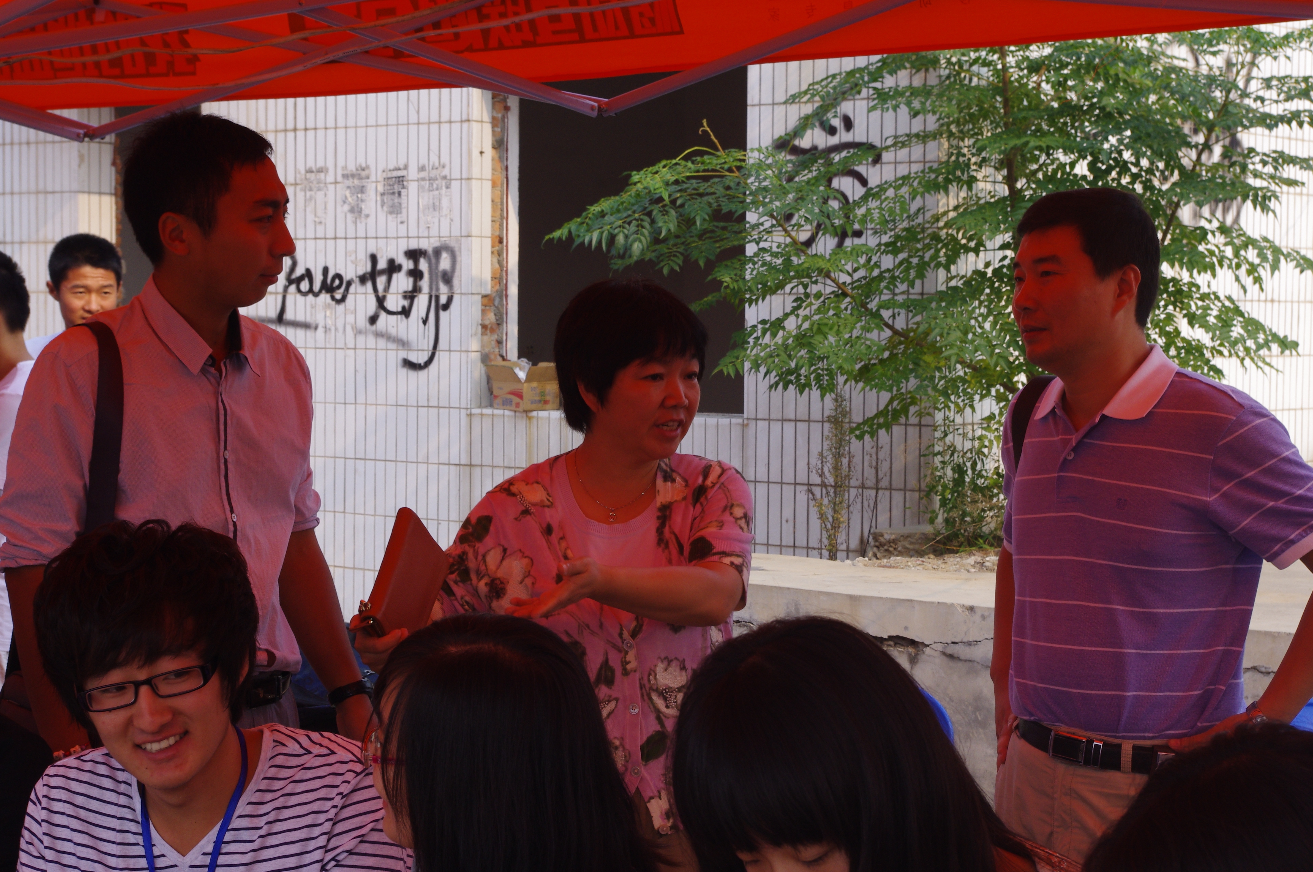 9点,院长李书琴、党委副书记何卫军等领导来到新生接待处指导工作。他们亲切地与迎新志愿者们交谈,肯定了同学们的工作。关切地询问新生及其家长,向他们介绍对我校beat365官网的部分情况,给初来乍到的新生带来第一丝温暖。