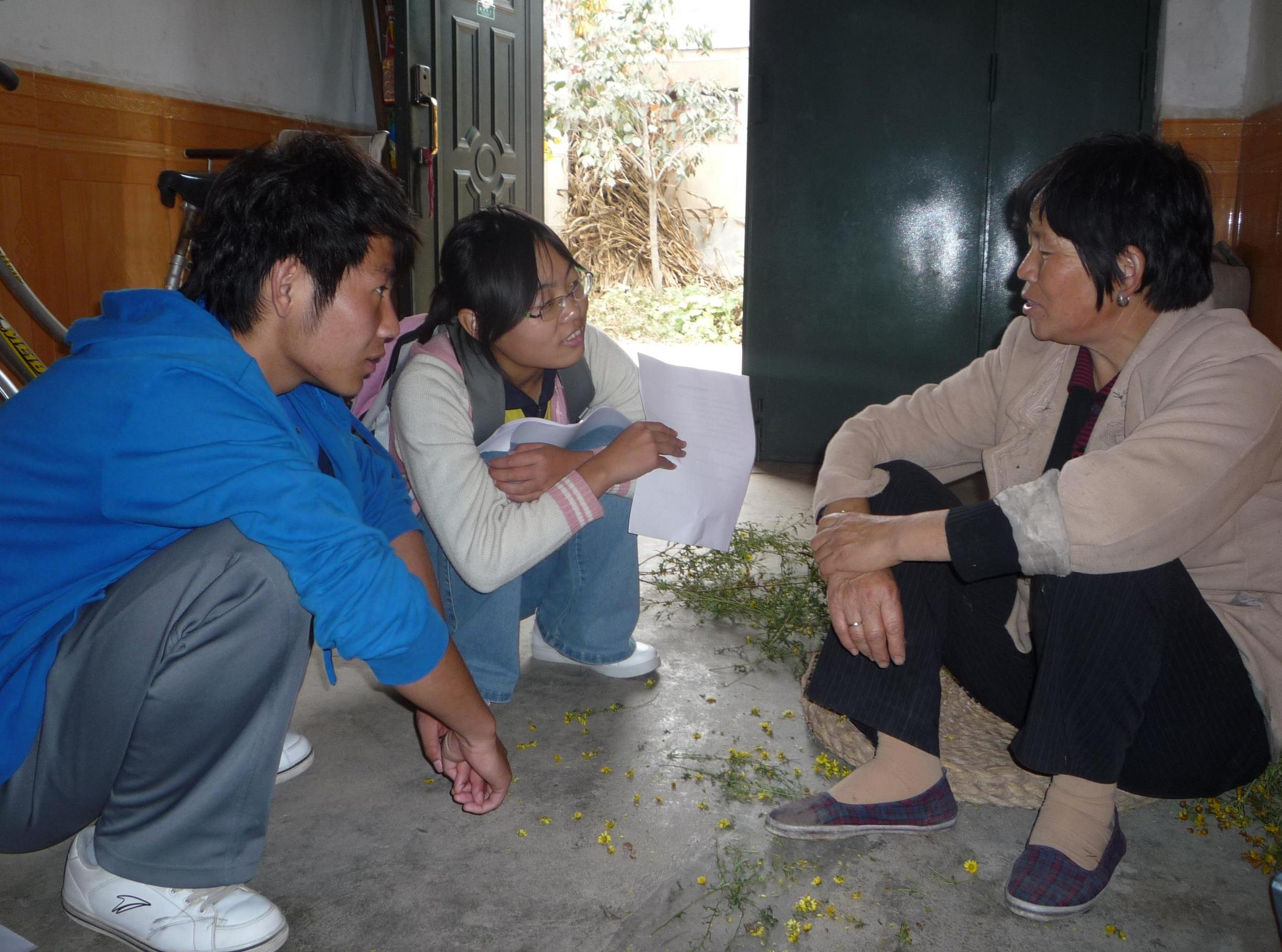 中午时,尽管烈日炎炎,但参加下乡的同学们却没有因为烈日而退缩。来到陈家沟,活动负责人王照浩同学与村长进行了沟通,说明了大家的来意。然后,王照浩向下乡的同学们分配了各自的任务。同学们分成两队,一队负责张贴第十六届农高会的海报。在他们贴完海报后,考虑到村民的文化水平较低,他们便用通俗的语言向周围的村民们介绍农高会的一些情况,比如开展日期,展出产品,到访的人员等等。另一队则负责与村民们交谈,以便了解当地的基本情况。在与村民聊天的同时,他们向村民们介绍甲流的一些知识,并告诉他们防治甲流的办法。