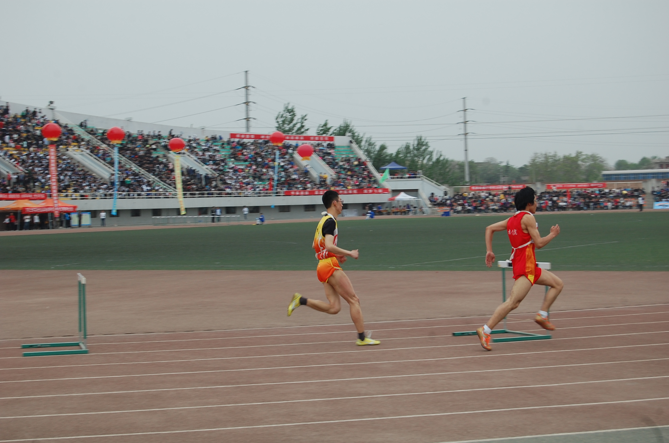 比赛开始之前,各位运动员在起点处摩拳擦掌,期待着一场速度与技术并存的对决。比赛即将开始,只听“砰”的一声枪响,各位选手如电光火石般向终点冲去,当跨过第一个栏时,王秋实一马当先冲在最前头,后来,王秋实同学更是展现出那种霸王风范,以全程第一且以绝对优势冲过终点,获得男子400米栏的冠军。