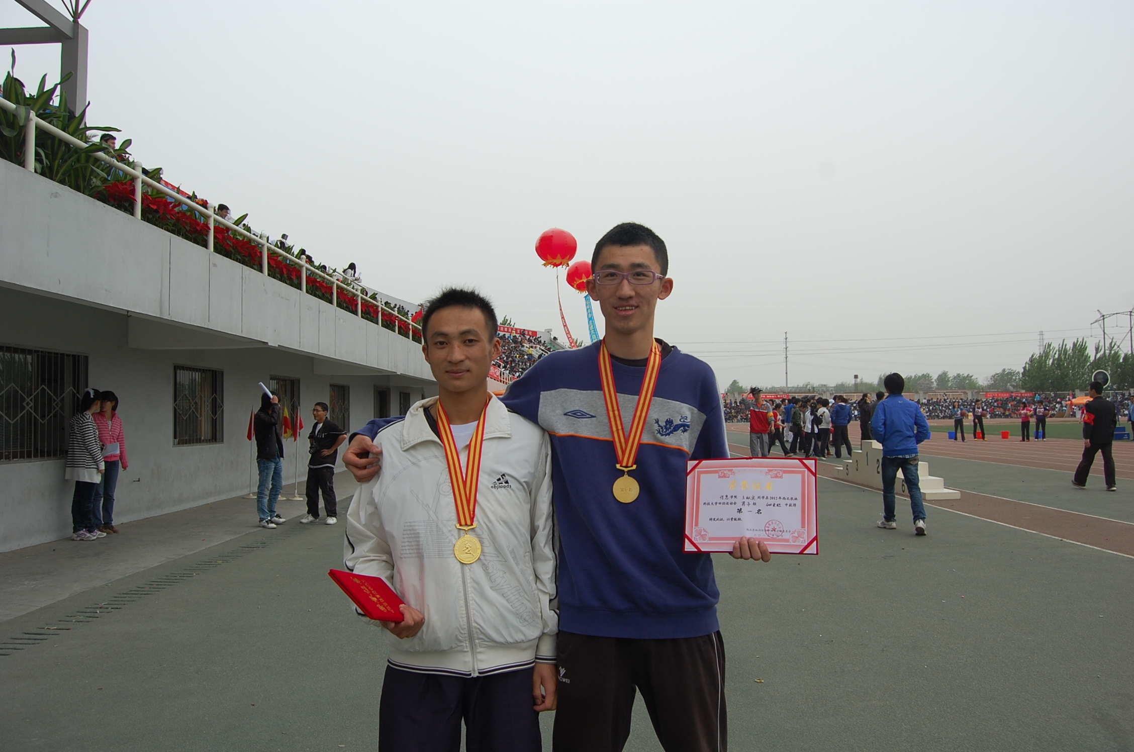 19日上午,beat365官网何李军同学在男子800m预赛中,表现出了十足的信心,以预赛第一名的成绩轻松晋级决赛。下午三时左右,何李军同学再次出征,枪声一响,何李军同学如离弦的箭一样奔向终点,两圈过后,何李军同学以明显优势成功问鼎男子800m比赛。赛后校宣传部副部长闫德忠和校党工委副书记赵阿兰为何李军同学颁发金牌和奖状并合影留念。