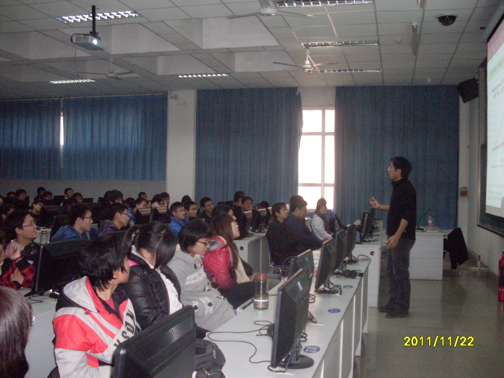此次报告会中,杨老师首先讲授了移动互联网的定义,又依次讲解了终端、系统平台、应用服务的迅猛发展,让同学们对移动互联网的概念有了一个更加深入的了解。并通过归纳总结得出中国移动互联网腾飞在即的结论。最后,杨老师又回答了现场同学关于WIFI技术、WAPI和WIFI之争以及WIFI与3G技术的融合等方面的问题,使得同学们能够更加深刻地认识到中国移动网络的飞速发展。报告会上,杨老师讲授生动幽默,妙语连珠,引得掌声连连。在座的各位同学们都认真聆听,仿若畅游在高科技的海洋中