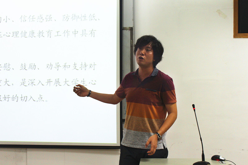 窦龙老师向参与培训的同学们介绍,所谓朋辈心理辅导,是指年龄相当者对周围需要心理帮助的同学和朋友给予心理开导、安慰和支持,提供一种具有心理辅导功能的帮助,具有自发性、义务性、亲情性、友谊性和简便有效性。有效的心里辅导,能帮助很多人从失恋,工作失败,朋友吵架,自我否定等等的阴影中走出来。在发现周围的同学出现心理异常后,温柔而耐心的倾听烦恼,让有问题者得以情绪释放,这样简单的辅导能对同学们有很大的帮助。反之,如果在交谈之后无明显效果,要及时报告辅导员,避免更大问题的发生。