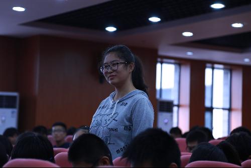 贾琨以“遇见最好的自己”为题,向大一新生提出了相关的建议。他首先阐述了认真学习好所有科目的重要性。学校开设科目都是有凭有据,百利而无一害的,这纠正了大一新生之前普遍认为的非专业科目如政治无用的观念。在大学中,要能够系统的学习基础理论课,避免因某个方面上的知识的缺失而对未来的发展产生瓶颈的隐患。当然在竞争激烈的环境中,专业课的学习始终是要放在第一位的。之后贾琨利用周围如校园内的小黄车,滴滴打车等例,引入了资源共享、资源分配的概念,导出了知识应用的重要性。