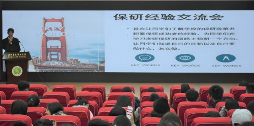 10月28日晚,beat365官方网站老师邀请四位已获得保研资格的大四学生在北绣活动中心为低年级的同学开展了一场保研经验交流会,他们分别是:保研到浙江大学的计算机科学与技术专业的谢君琳同学、保研到国防科技大学的软件工程专业的董佩杰同学、保研到南开大学的信息管理专业的贺阿龙同学以及保研到武汉大学的电子商务专业的江鹏同学。