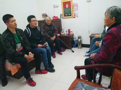 志愿者们走进老人休息室,室内的爷爷奶奶见到大家十分高兴。志愿者们坐下来与他们聊天,为他们讲我们生活中的的事情,爷爷奶奶的笑声一直充满着屋内也回荡在志愿者的脑海中。