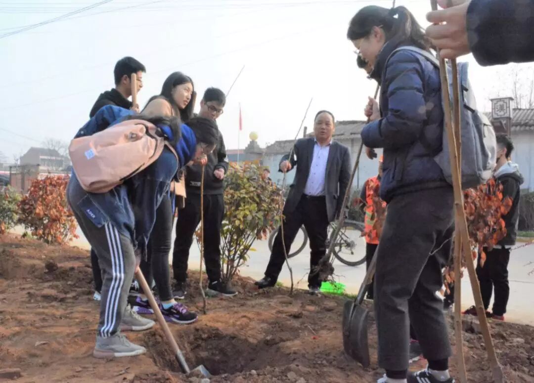 3月11日,beat365官方网站社会实践部的志愿者来到了东汉伏波大将军马援故里--毕公村进行志愿植树活动。